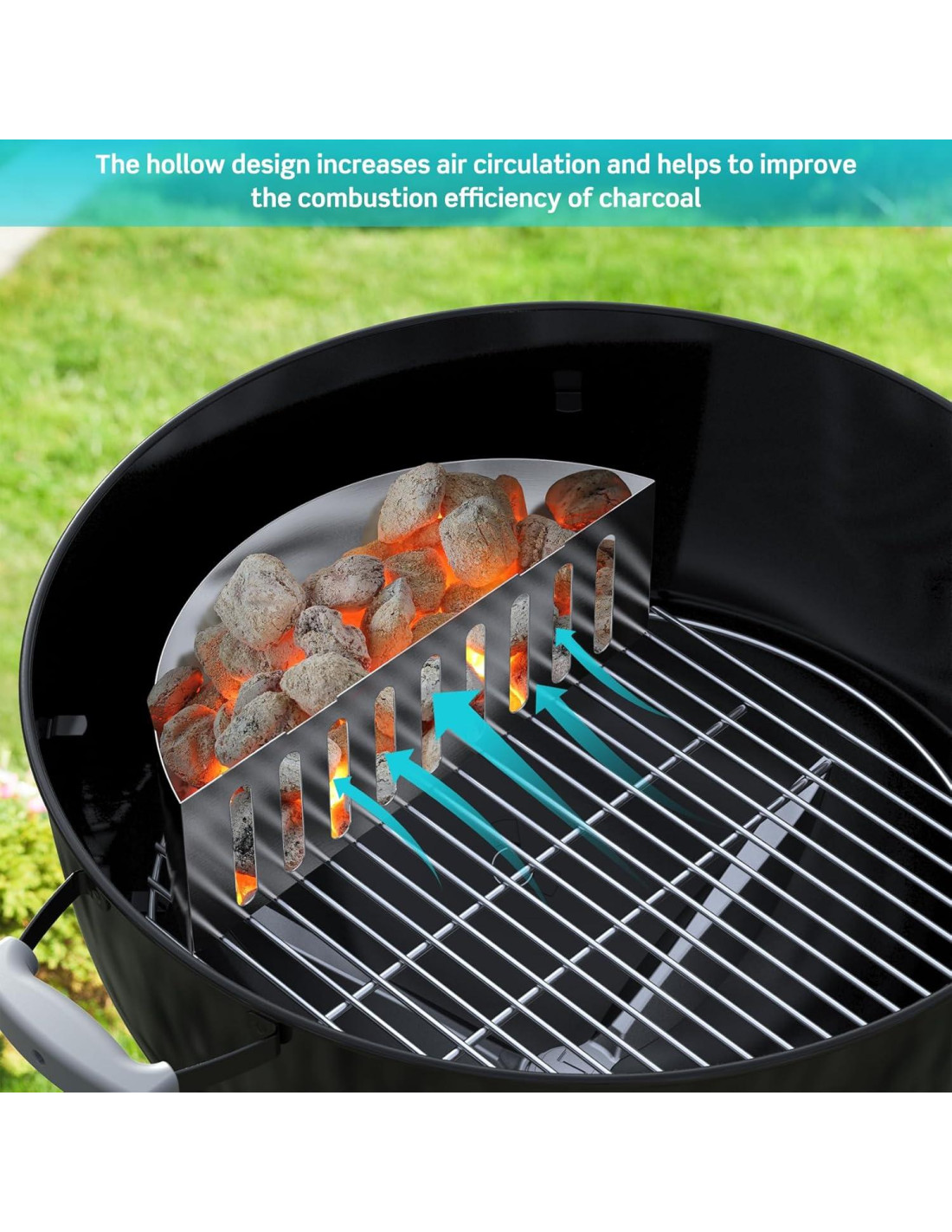 - Compatibilidad - Por favor, confirma el tamaño del producto cuidadosamente. Canasta de carbón de gran capacidad de 14" (35.56 cm) L x 5" (12.7 cm) W x 4.7" (11.94 cm) H (La nuestra es más alta, más grande y sostiene más carbón que otras). Compatible con parrillas de kettle Weber/Napoleon de 22" (55.88 cm)/26" (66.04 cm) y otros modelos de tamaño similar.