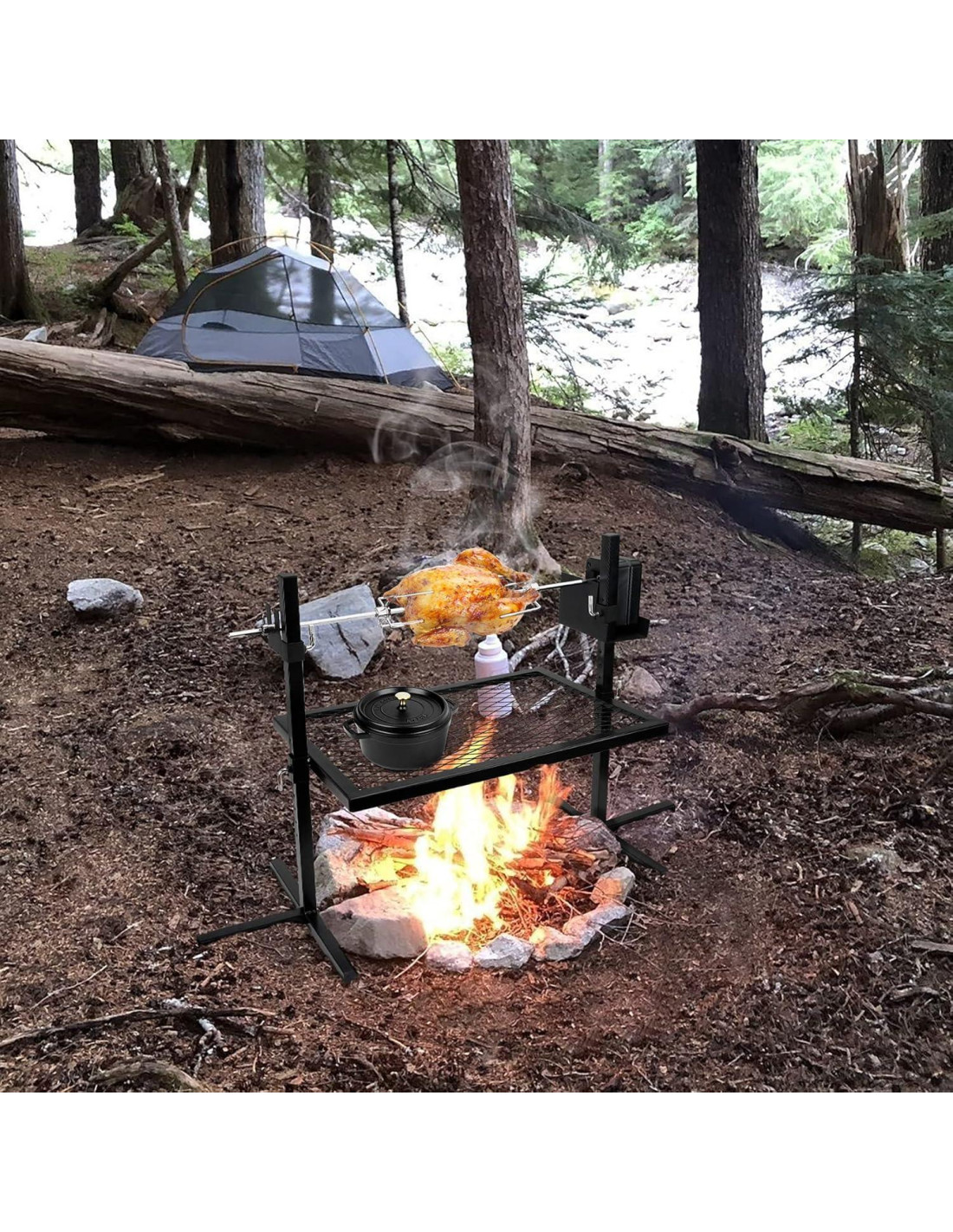 - Fácil ensamblaje y desmontaje sin herramientas; El tornillo simple ajusta la altura de la parrilla y el rotisserie