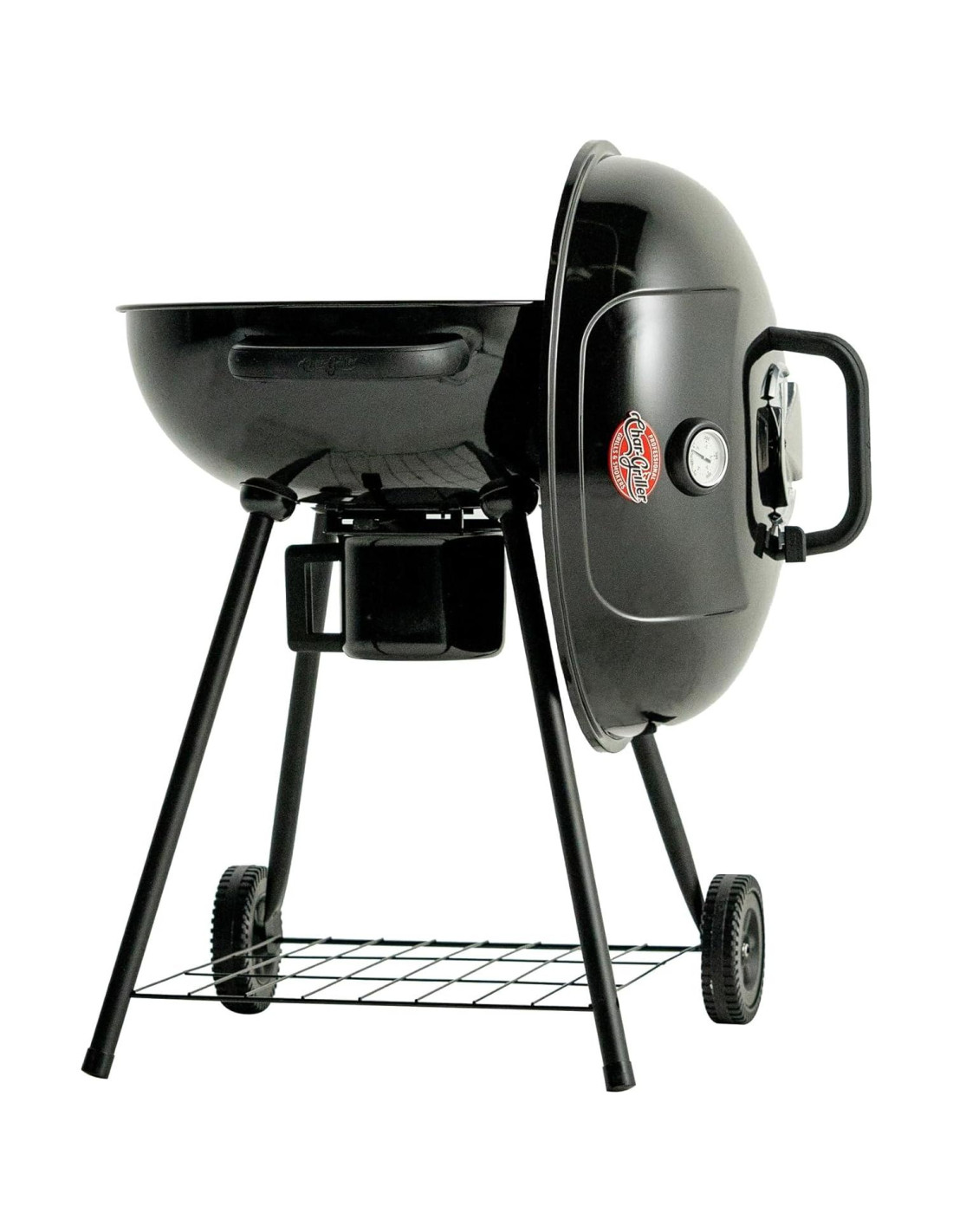 Experimenta sabores auténticos a la parrilla con carbón con la Parrilla de Carbón en Kettle de 22 pulgadas y Ahumador Char-Griller, que cuenta con una amplia área de cocción de 2348.06 cm. Esta parrilla de estilo kettle, que mide 66 x 96.5 x 58.4 cm (ancho x alto x profundidad), está hecha de acero duradero y presenta una tapa y cuerpo recubiertos de porcelana para una óptima retención de calor. Maneja fácilmente la temperatura de cocción utilizando las ventilaciones de aire ajustables, y recarga carbón a través de la puerta de acceso durante las sesiones de parrilla. La bandeja de cenizas EasyDumpTM extraíble simplifica la limpieza, mientras que el elevador de rejilla de la parrilla asegura una experiencia de parrilla segura. Este producto viene con una garantía de 5 años y ofrece una variedad de accesorios de parrilla Char-Griller para mejorar tu cocina al aire libre. La Parrilla de Carbón en Kettle de 22 pulgadas y Ahumador Char-Griller es perfecta para crear deliciosas comidas con un auténtico sabor a BBQ para cualquier ocasión.