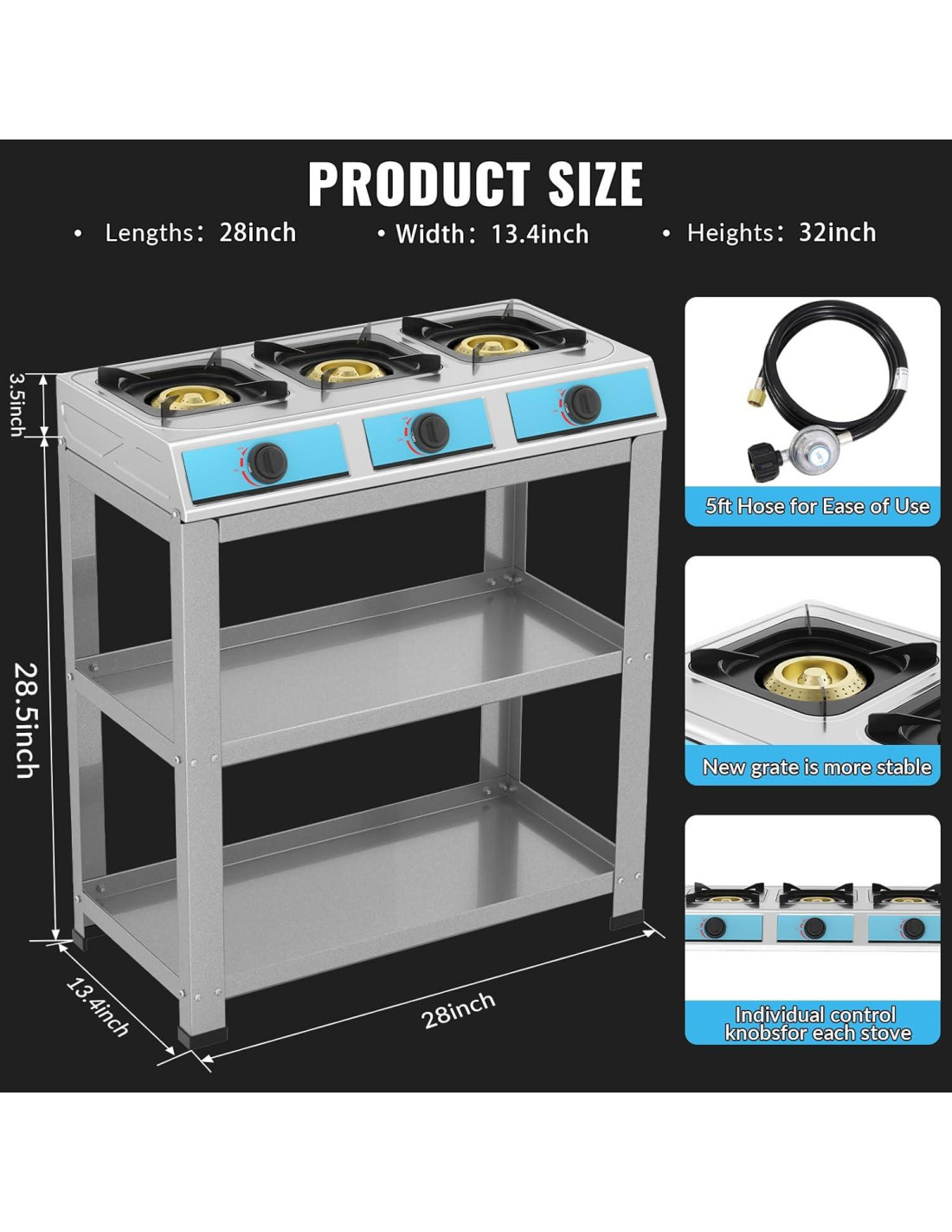 - [Accesorios Completos] - Estufa de gas de 3 quemadores con soporte removible y regulador de gas y manguera certificados por CSA para un fácil uso.