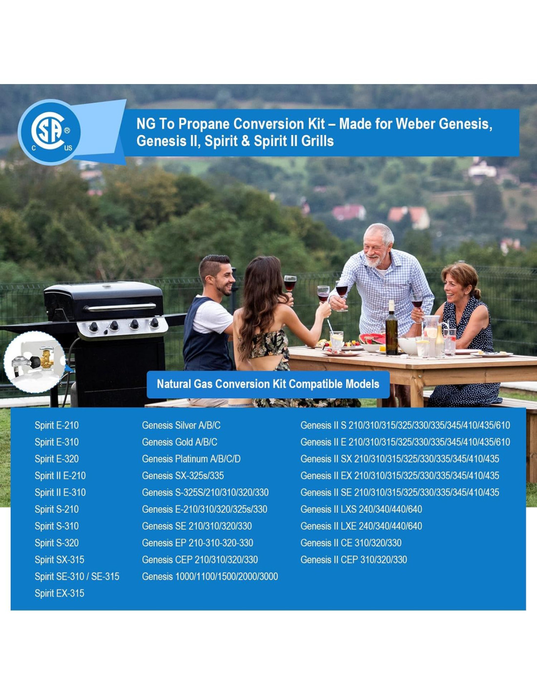 - Recordatorio Amistoso: ¡Queremos que disfrutes cada momento de asado! Antes de ordenar, verifica dos veces el modelo de tu parrilla Weber para asegurar un ajuste perfecto. Nuestro kit de conversión de parrilla de gas a propano está diseñado para modelos específicos de parrillas Weber Genesis o Weber Genesis II, y para parrillas Weber Spirit o Weber Spirit II, obtener la coincidencia correcta significa una instalación más fácil y mejor BBQ cada vez.