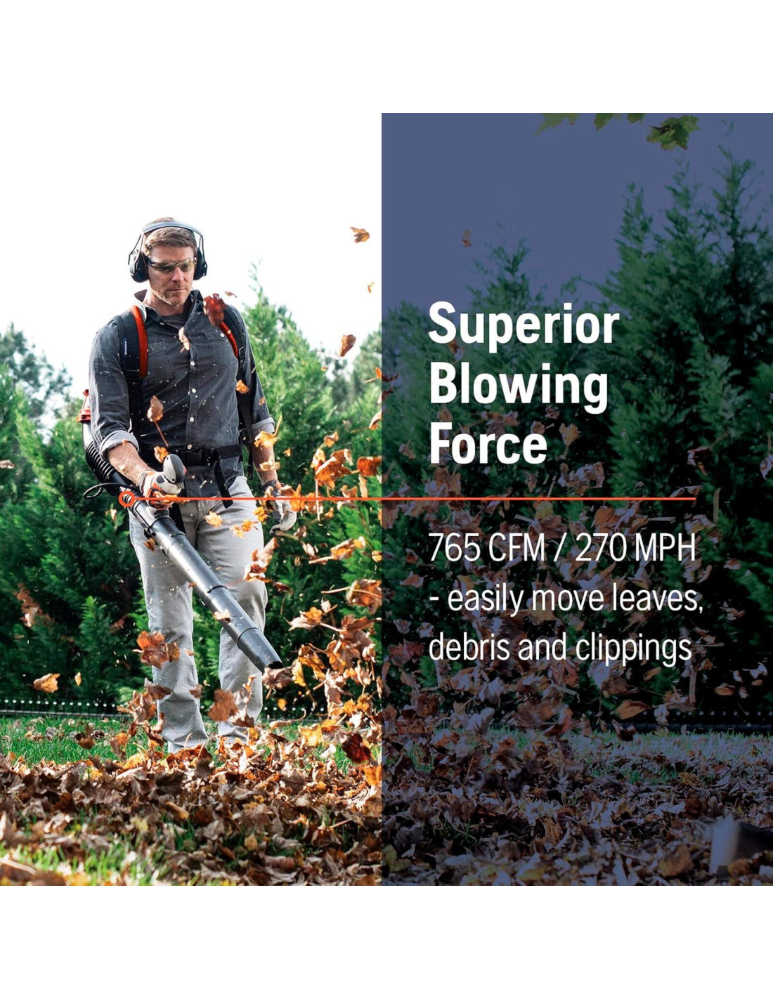 - Rendimiento de Despeje Potente: motor de 2 tiempos, 51-cc, 2.16-HP tiene una poderosa fuerza de soplado (765 CFM, 270 MPH, 22 N), reduce emisiones hasta en un 60%, y aumenta la eficiencia del combustible hasta en un 20%