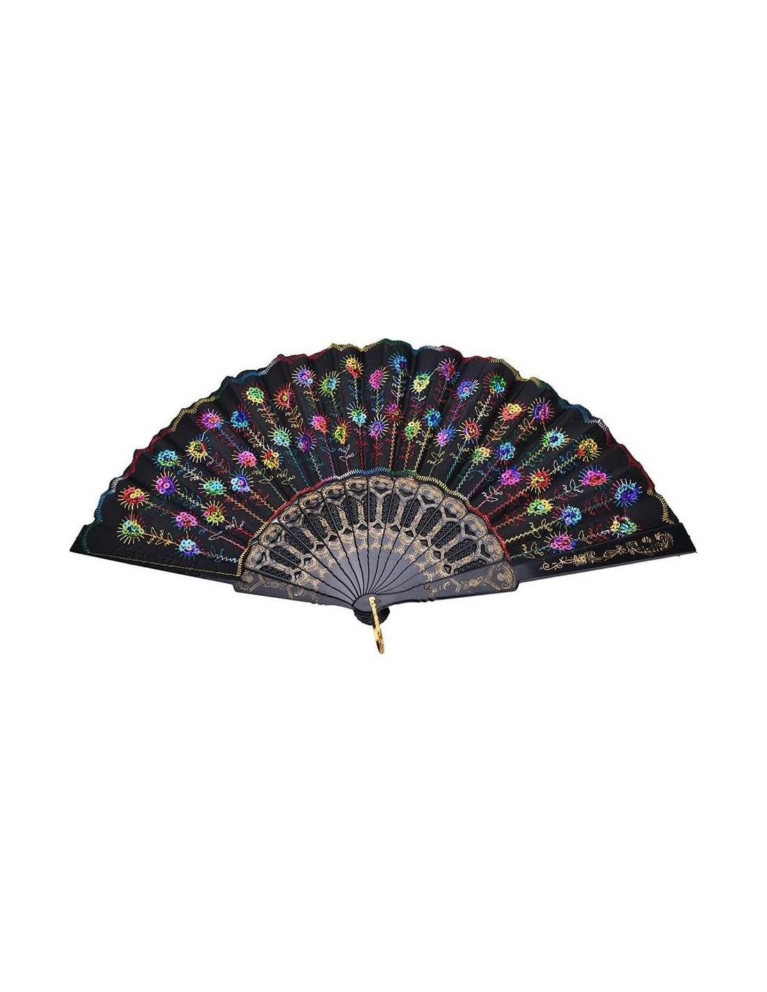 10 PCS Abanico Español Plegable Abanicos de Flores para Bailar Decoración para Fiestas de Boda Fiesta de Té (Patrón de Cola de Pavo Real Bordado, 10 Colores Variados)