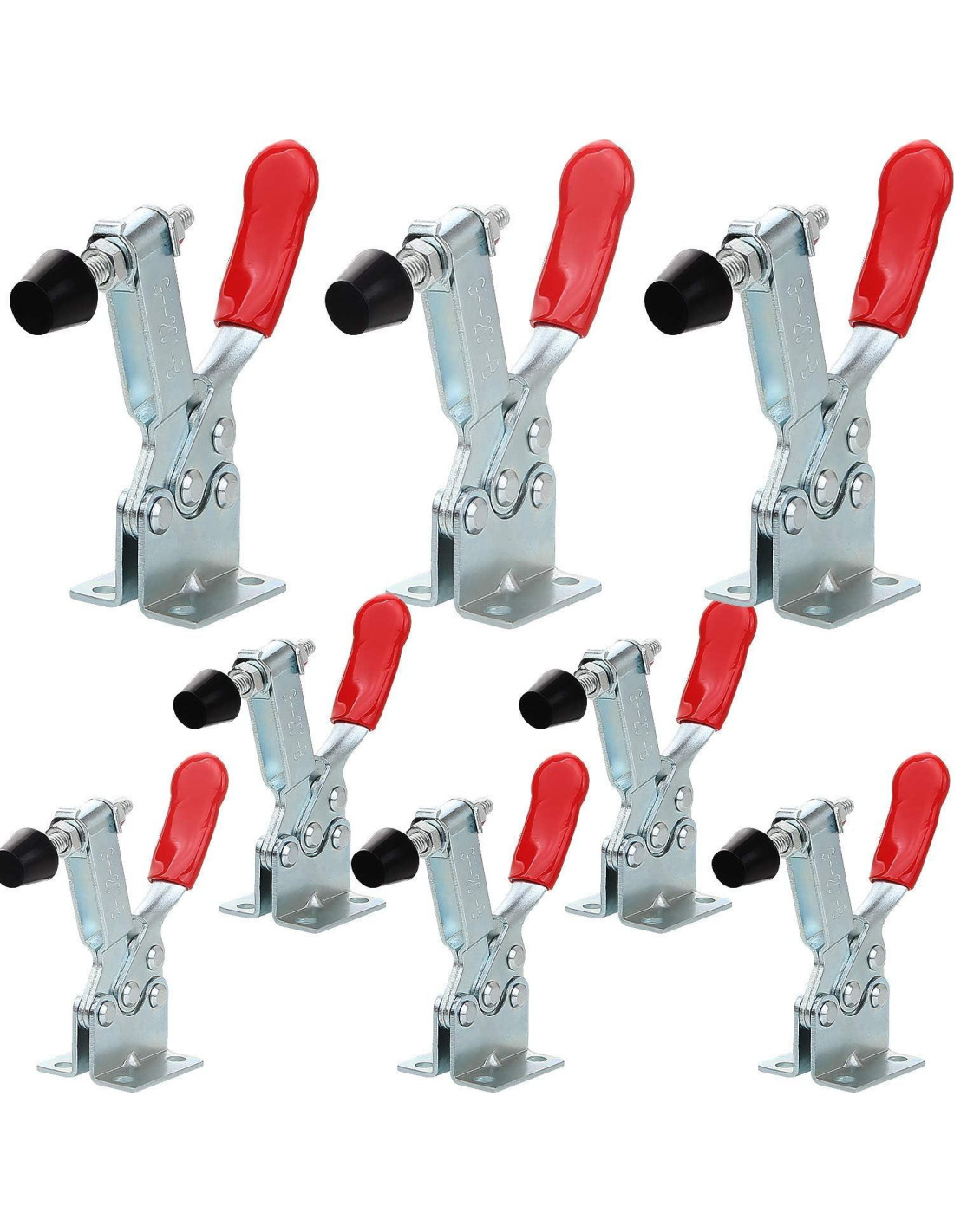 - Paquete de 8 Piezas de Abrazadera de Palanca Manual: El paquete incluye 8 piezas de abrazadera horizontal roja antideslizante 201B, adecuada para fijación rápida de placas y tableros de metal para trabajos en madera, operaciones de máquinas, soldadura, moldes