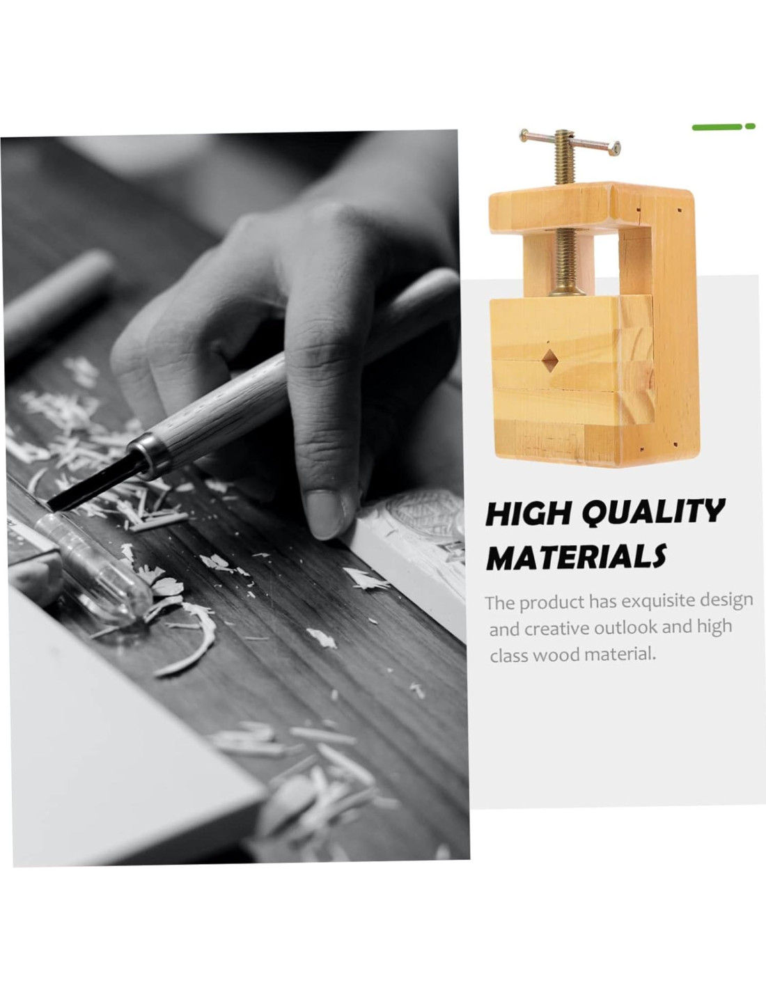 Lista del Paquete 1 x Herramienta de Tallado en Madera Características -Tamaño: Aproximadamente 12.00X6.50X4.50cm (4.72X2.55X1.77 pulgadas) tallado en madera. -Material: Banco de herramientas de madera. -Color: Como se muestra en la madera - Este producto es propicio para que las personas profundicen en las herramientas de la cultura tradicional. - El producto está hecho de material de madera de alta calidad, y el producto es práctico para que las personas usen el Dispositivo de Grabado. - El producto tiene una gran sensación de manejo y es fácil de usar todo el tiempo en algunos aspectos de las herramientas de tallado en madera. - El producto será un gran ayudante pronto cuando lo aproveches durante mucho tiempo en la abrazadera de tallado. - Este producto es adecuado para que los estudiantes aprendan el arte de cortar sellos y comprendan la cultura del corte de sellos mini tornillo de banco. Información de Bienes mini tornillo de banco El producto está hecho de material de madera de alta calidad, que es práctico y conveniente para que las personas lo aprovechen todo el tiempo de una manera. Ya seas un principiante o un tallador experimentado, esta herramienta mejorará tu experiencia de tallado. Úsala para crear diseños intrincados en bloques de madera, tallar madera o bloques de tallado de tilo. la abrazadera ajustable sostiene de manera segura tu pieza de trabajo, permitiendo tallados detallados y precisos.