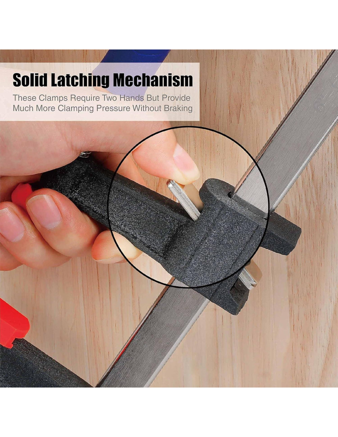 - DISEÑO DE LIBERACIÓN RÁPIDA: Estas abrazaderas requieren dos manos pero proporcionan mucha más presión de sujeción sin romperse. El pestillo de liberación rápida te permite ajustar y bloquear las abrazaderas de madera de manera simple y rápida.