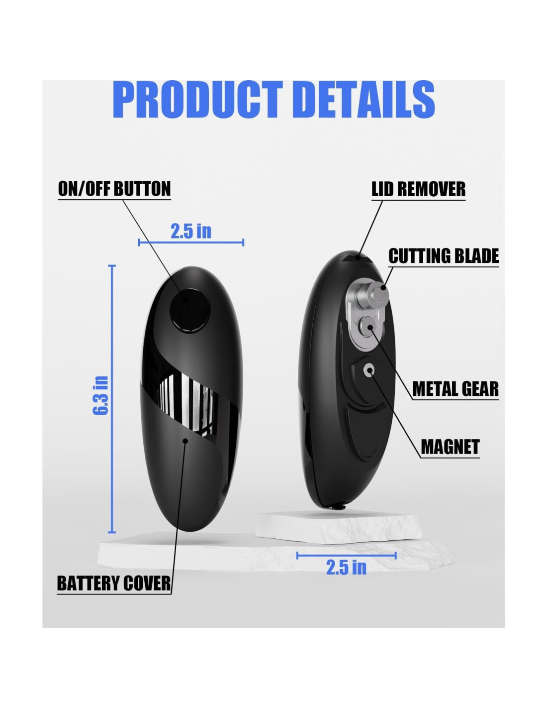 - [Abrelatas Eléctrico de Un Toque - Perfecto para Personas Mayores] Este abrelatas automático no requiere torsión, solo presiona el botón para abrir sin esfuerzo. Ideal para personas con artritis y ancianos.