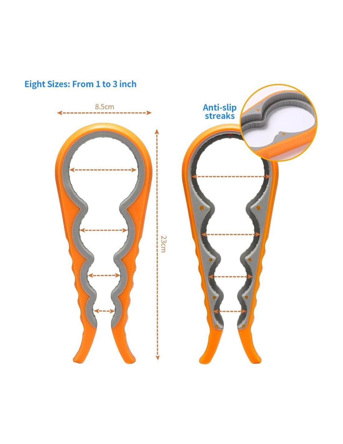 - AGARRE DE MÚLTIPLES TAMAÑOS: Tamaños ajustables de aberturas circulares hacen que el abre frascos sea extremadamente conveniente para abrir una amplia variedad de tamaños de tapas.