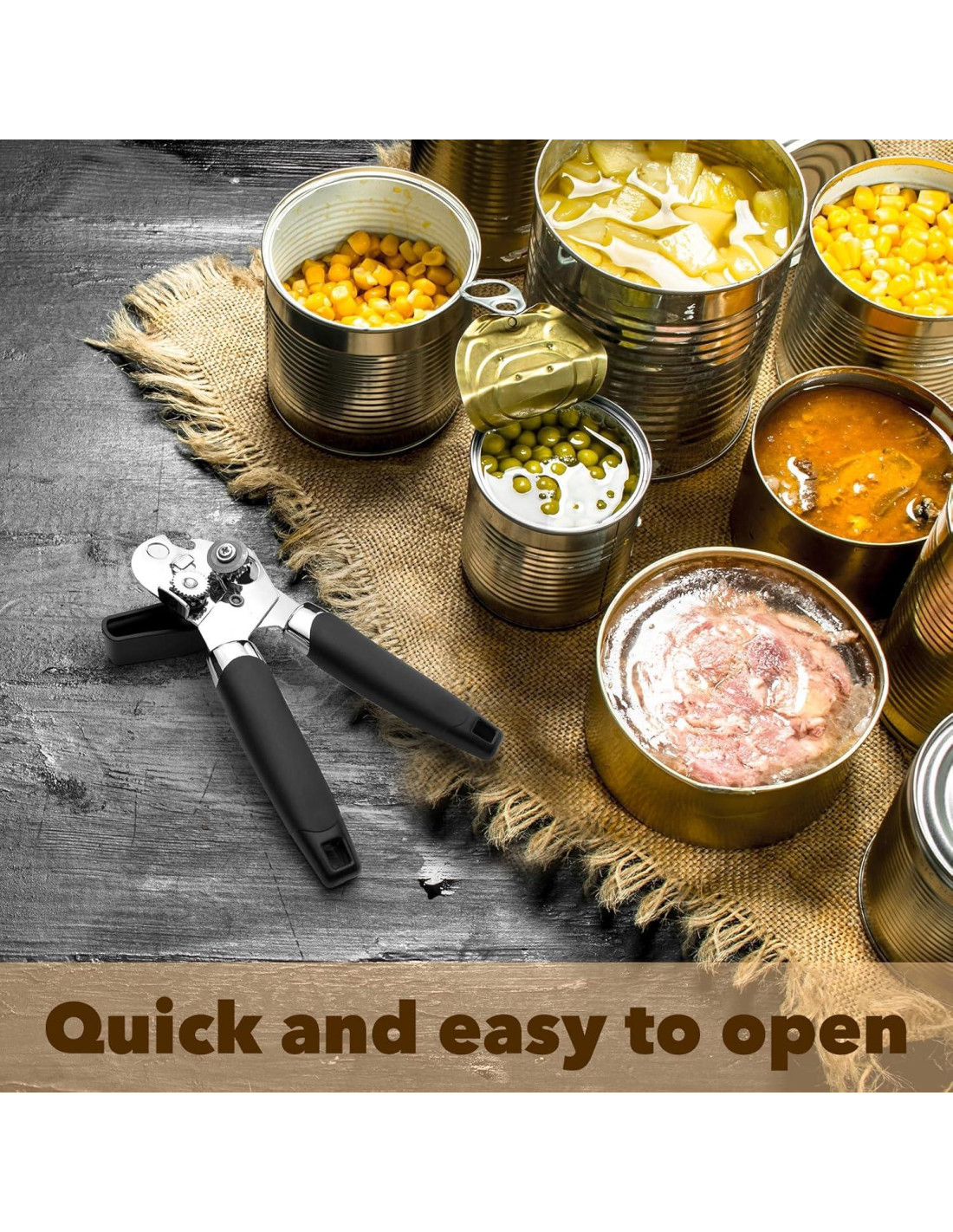 - Funcionalidad Versátil: No solo un gadget de cocina, este abrelatas manual sobresale en varios entornos, permitiéndote abrir fácilmente productos enlatados durante viajes de campamento, picnics o incluso en restaurantes, convirtiéndolo en un imprescindible para cualquier entusiasta de la comida