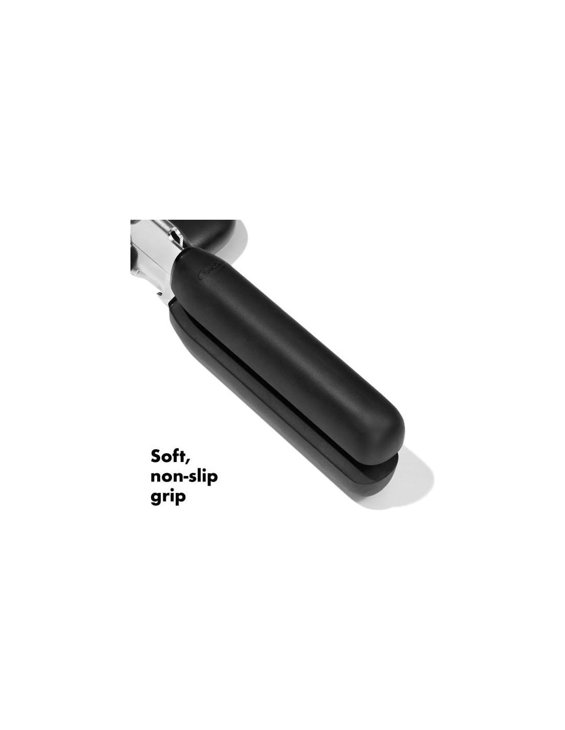 Descripción del Producto OXO International Abrelatas con Mango Suave La rueda de corte afilada está hecha de acero inoxidable y los mangos son grandes y acolchados. Este abrelatas viene con un abridor de botellas incorporado. Modelo: 28081 Material: Acero inoxidable Color: Mango negro Abridor de botellas incorporado Perilla sobredimensionada Rueda de corte afilada Funciona en cualquier tamaño de tapa Altura: 2" (5.08 cm) Ancho: 3" (7.62 cm) Longitud: 7" (17.78 cm) 375373. Solo lavar a mano. Amazon.com Con su gran mecanismo de giro fácil de operar, este abrelatas hace su trabajo con un esfuerzo mínimo de su parte. Los mangos sobredimensionados y antideslizantes se ajustan cómodamente a la mano, absorbiendo la tensión de mantener el abrelatas en su lugar mientras los dientes de acero inoxidable muerden la tapa con la facilidad de un gran tiburón blanco. El abridor de botellas incorporado, la construcción robusta y la facilidad de uso hacen del abrelatas Good Grips uno de los mejores en el mercado. La línea Good Grips presenta mangos duraderos y flexibles en cada producto. Diseñados ergonómicamente para ajustarse cómodamente a la palma, los mangos de goma procesada que absorben la presión reducen el estrés en las manos mientras proporcionan un agarre excepcional. Hechos del mismo material del que se construyen las juntas de lavavajillas, los mangos son antideslizantes, húmedos o secos, y aptos para lavavajillas. Los productos Good Grips tienen precios moderados y han ganado el Premio de Diseño Tylenol/Fundación de Artritis. --Laurie Notaro
