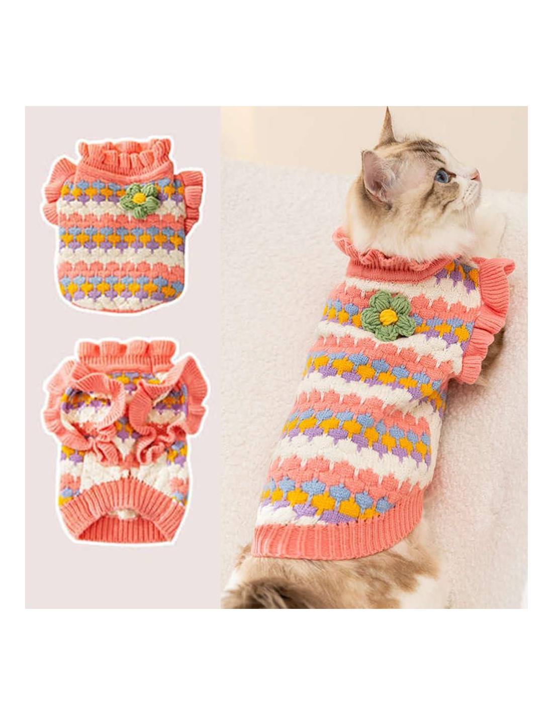 - [ Diseño exquisito ]: Nuestro suéter para gatitos presenta un diseño único de flor tridimensional y está adornado con un elegante patrón de flor de tulipán, combinado con el cuello y los puños con volantes, haciendo que tu mascota se vea más elegante y con estilo.