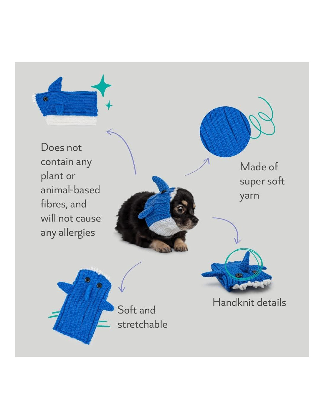 - Hecho con hilo súper suave que asegura calidez y comodidad, y no causará alergias ni lastimará a su mascota de ninguna manera