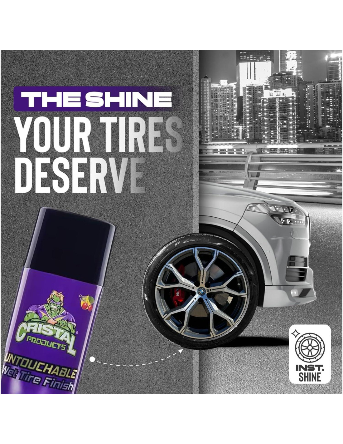 - Brillo de neumáticos extremadamente resistente a las inclemencias del tiempo