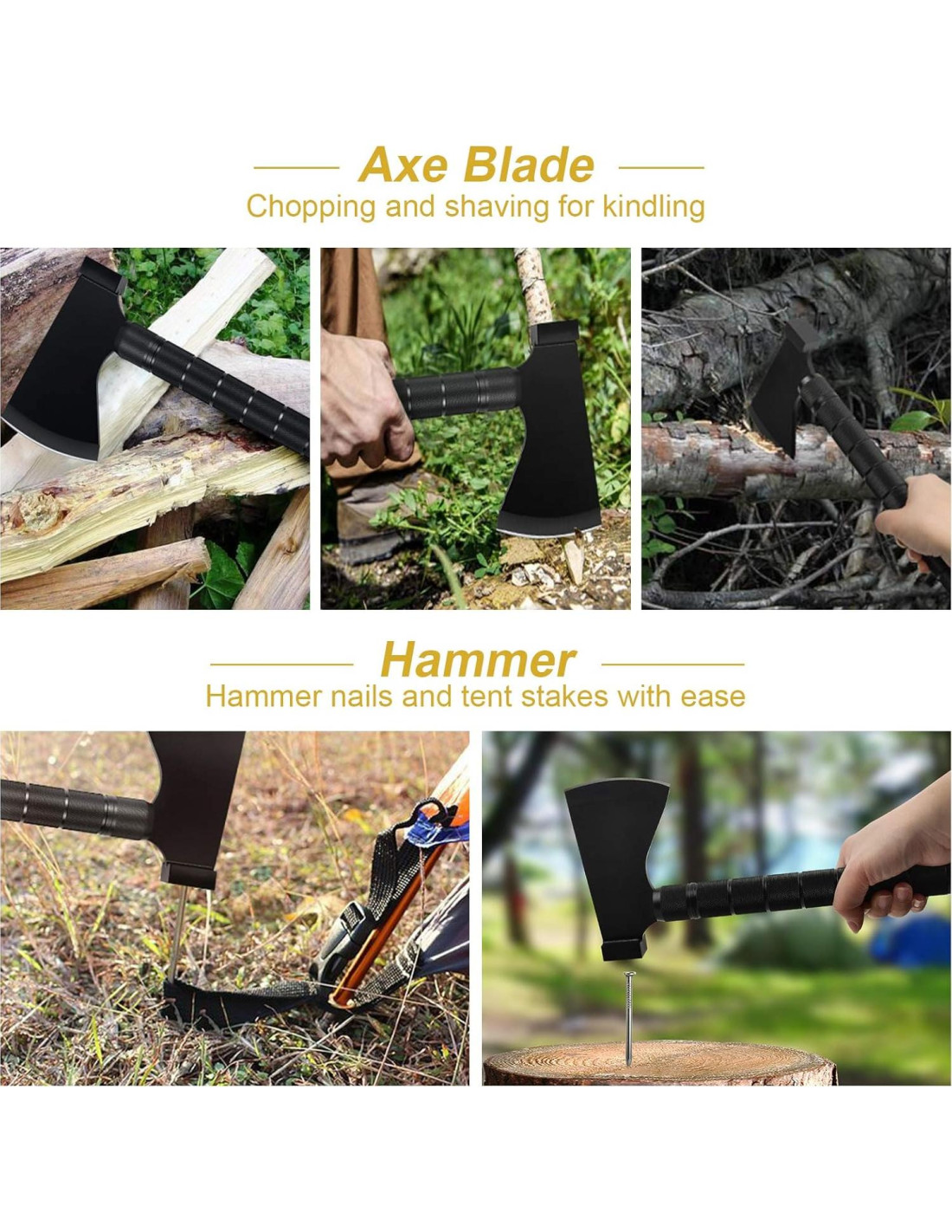 - Hacha de Camping con Afilador - El Hacha de Camping Yeacool es una herramienta de camping tan versátil: Cortar, Picar, Dividir, Recortar, Astillar, Abrir, Hacer Fuego, Silbar, Martillo, Brújula, etc. Muy adecuada para cazadores, sobrevivientes, excursionistas, campistas, amantes de la naturaleza. El afilador incluido te permite afilar el hacha cuando sea necesario.