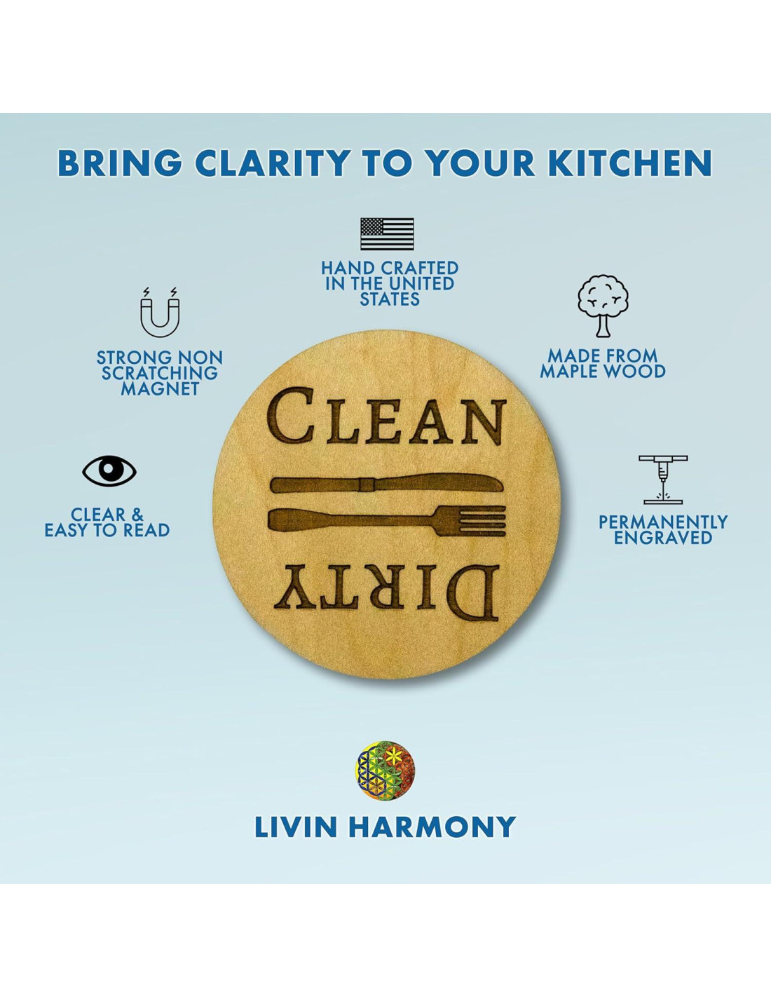 - Simplifica tu vida con nuestro signo limpio sucio para lavavajillas. Es un accesorio imprescindible para cualquier cocina organizada y eficiente. El diseño minimalista de madera se adapta a cualquier decoración, incluyendo granjas, moderno, bohemio y cabañas.