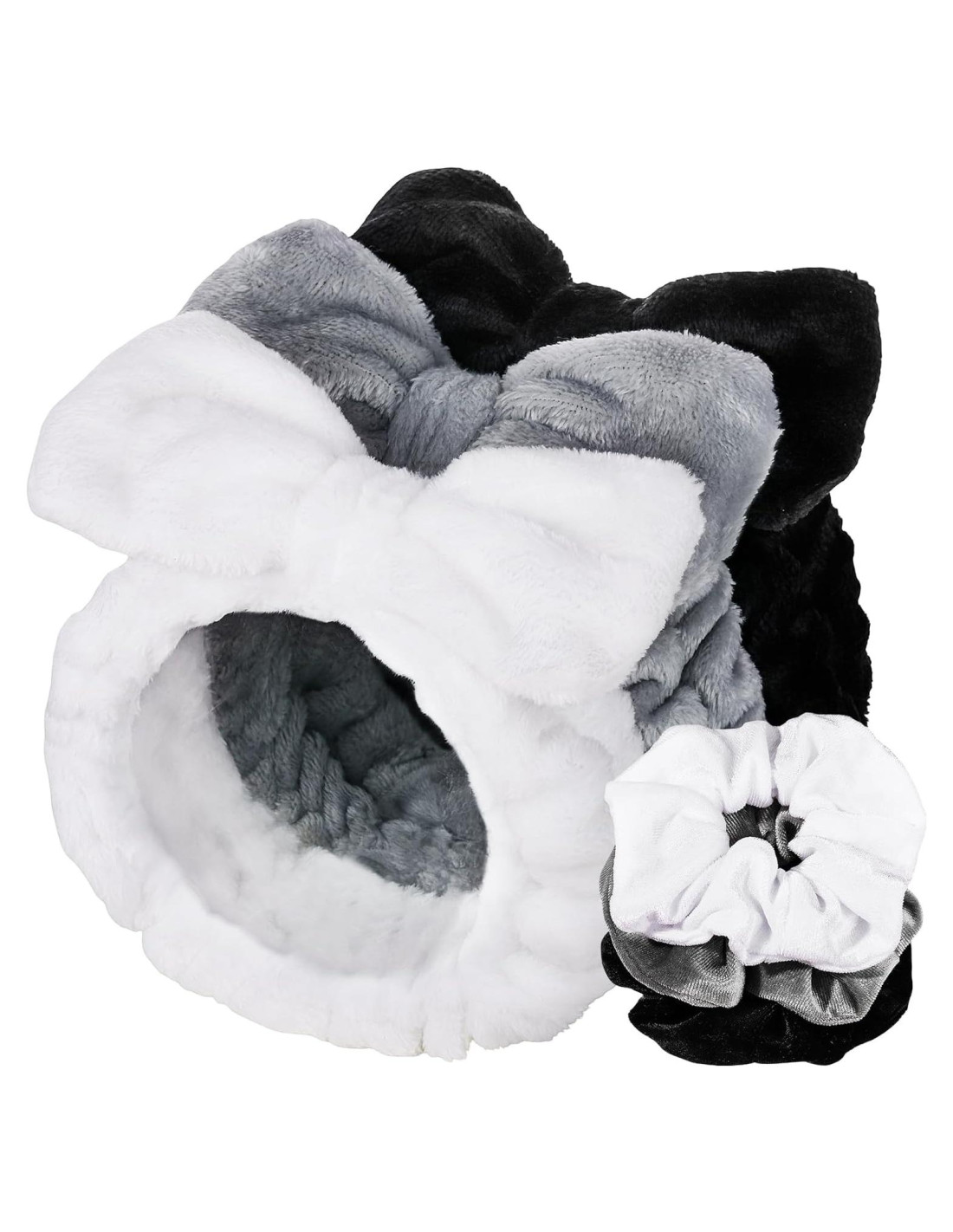 - Bandas para la cabeza de cuidado de la piel en tres colores: Vienen en tres colores clásicos: Negro, Blanco y Gris, hechas de microfibra de forro polar, las suaves bandas para la cabeza spa son bastante suaves, cómodas de usar, además con gran capacidad de absorción de agua, pueden mantener el cabello seco de manera efectiva. Diseño de lazo dulce, adorable, si no te gusta, el lazo también es removible.