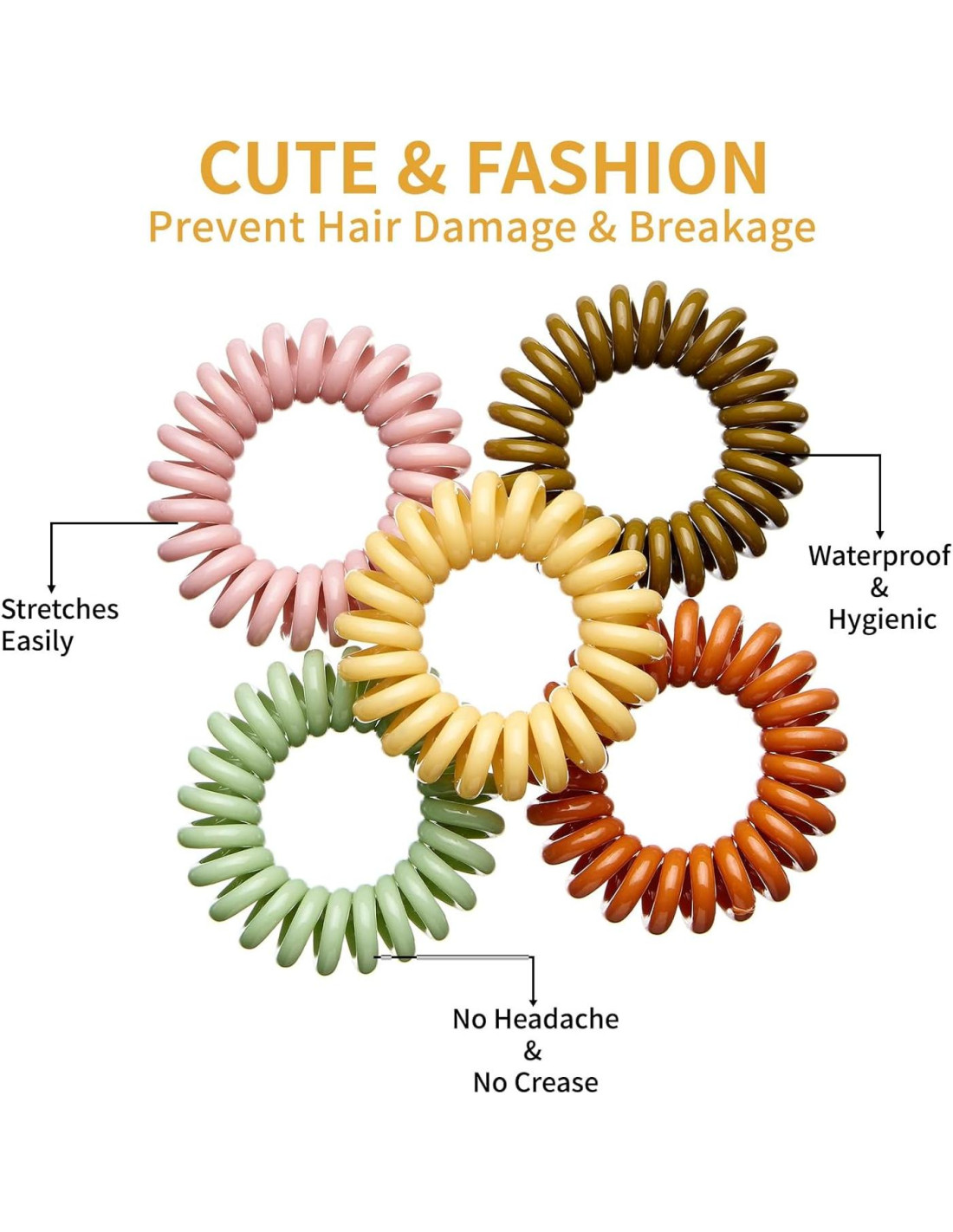 - [Sin Daños e Impermeable] : el diseño espiral de nuestras bobinas de cabello para teléfono distribuye la presión de la coleta sobre un área más amplia del cabello, evitando así bultos en la coleta, daños en el cabello y quiebre del cabello, y también haciendo que los dolores de cabeza causados por coletas demasiado ajustadas sean cosa del pasado. Además, nuestras bandas para el cabello son impermeables, por lo que puedes usarlas para tocar el agua sin miedo.