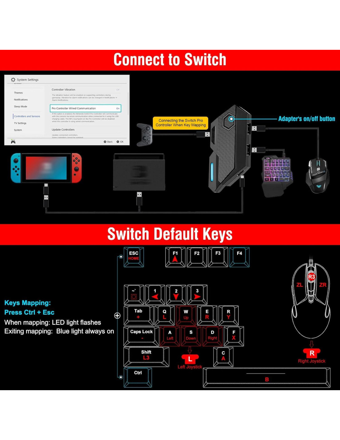 - Compatibilidad Multiplataforma: El adaptador de teclado utiliza el controlador de juego original como guía, es un adaptador de entrada de teclado y ratón compatible con múltiples plataformas, compatible con Switch, Switch OLED, Switch Lite, Switch 2, X-box Series S/X, X One, X 360, PS4, PS3 (No funciona con PS5)