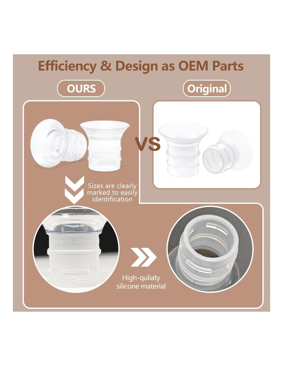 - [Seguro para mamá y bebé] : Nuestro kit de tamaño de brida está hecho de materiales de silicona de grado alimenticio, libres de BPA. Proporcionan una textura suave que es delicada con la piel sensible. Los inserto de brida se ajustan estrechamente a su piel, promoviendo una expresión de leche eficiente sin ninguna sensación de cuerpo extraño.