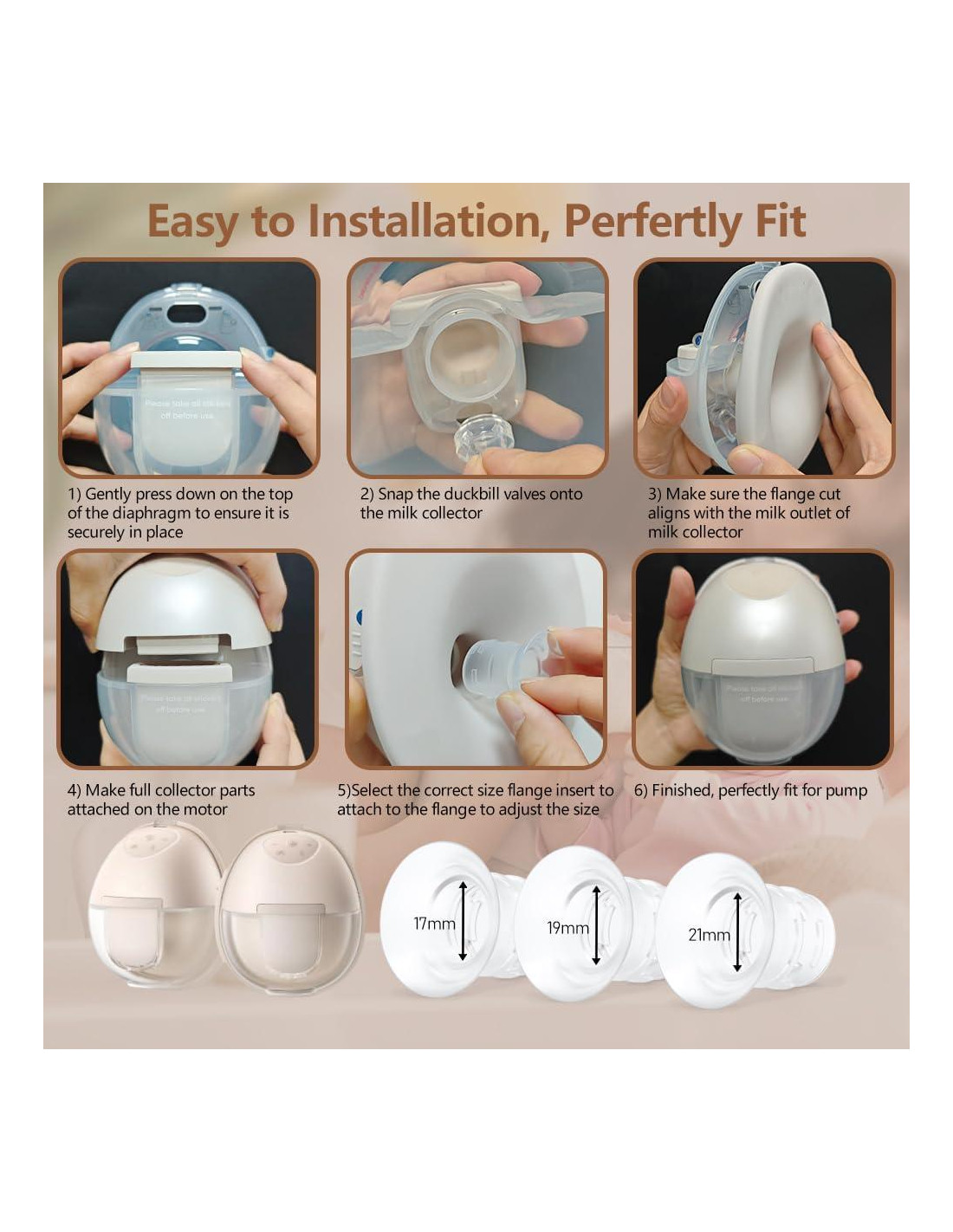 - [Tamaño Variado, Elija el Tamaño Exacto] : Los Inserto de Brida 17/19/21mm se utilizan para encontrar el tamaño correcto para sus pezones sin pagar tarifas dobles. Elegir el inserto de brida correcto para la extracción es más cómodo y eficiente. Algunas madres han experimentado hinchazón en los pezones mientras ordeñan, por lo que es importante observar cómo lucen sus pezones durante una sesión de extracción.