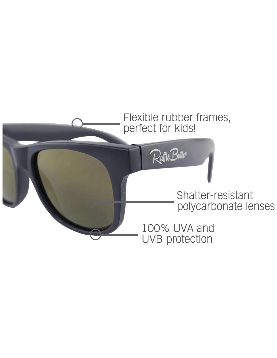 RuffleButts se enorgullece de ser una empresa con sede en EE. UU. ubicada en Flower Mound, TX. Todo lo que vendemos está diseñado internamente. Estamos dedicados a una visión y comprometidos a crear ropa de calidad heredable con una diferencia palpable, comprobada por más de 100,000 reseñas de cinco estrellas. La gratitud es lo que nos define y nos guía todos los días. Desde la piscina hasta el parque, mantén a tu pequeño a salvo del sol con RuffleButts. ¡Toda la ropa de baño de RB está hecha con tela protectora UPF50+! Coordina a tus pequeños para fotos familiares, días de fotos escolares, vacaciones y bodas. Estamos muy agradecidos de ser parte de los momentos de vida de tu familia. Desde el primer viaje a la playa de tu pequeño hasta su primera festividad y el primer día de escuela, ¡tenemos algo para cada ocasión! Nos esforzamos por crear experiencias alegres y recuerdos perfectos con productos de calidad y personas que se preocupan. "Las gafas son perfectas para un año. Se ajustan perfectamente y son muy duraderas para un niño pequeño. ¡Las amo!" - Terri F. "¡Muy resistentes! ¡Perfectas para niños! ¡A mi hijo de tres años le encanta su par!" - Jessica P. "¡Gran calidad y a mi hija de 2 años le encantan! Se mantienen bien incluso sin una banda." - Erika R. "¡Estilo muy lindo! Parece resistente para el uso de un niño pequeño." - Sally E. Protege a tu pequeño de los dañinos rayos del sol. Protección solar incorporada. Recomendamos aplicar protector solar para mayor protección. Marcos de goma flexibles, ¡perfectos para niños! Lentes de policarbonato resistentes a impactos. Protección 100% UVA y UVB. Estilo unisex. Adorables estilos coordinados para hermanos. Accesorios a juego que llaman la atención. Promesa de 100% felicidad. La calidad importa. Diseñado en EE. UU. Con sede en Flower Mound, Texas. Estas gafas de sol de estilo clásico mantendrán a tu pequeño a la moda y protegido del sol. Lentes resistentes a impactos y marcos de goma flexibles aseguran comodidad y durabilidad.