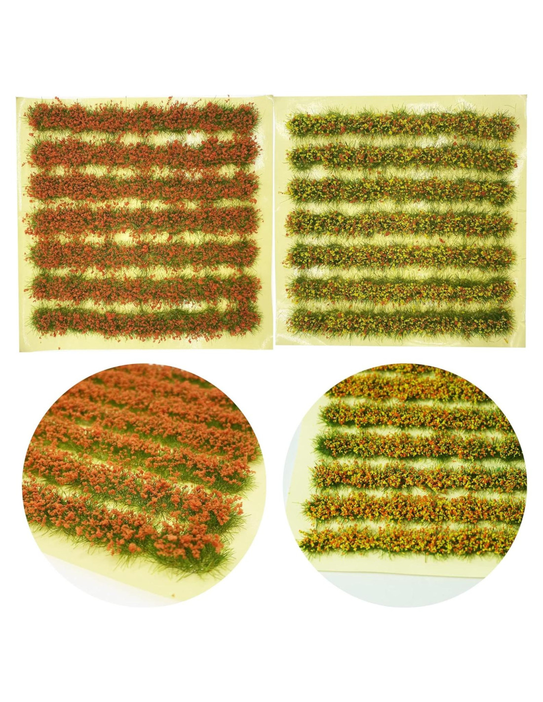 - Ampliamente utilizado: Las tiras de arbustos en miniatura y los árboles de modelo en miniatura se aplicarán como arquitectura, modelos de ferrocarril, dioramas, mini jardín, modelos de edificios, diseños de escenas o decoraciones de paisajes.