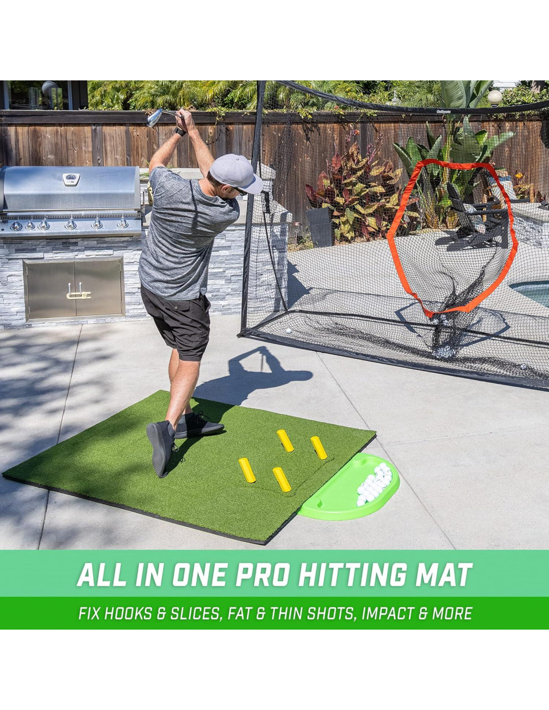 - ALFOMBRILLA DE GOLF PRO: Presenta alfombrillas de golpeo intercambiables para practicar elementos clave del swing en casa, corregir ganchos/cortes, golpes gruesos o delgados y mejorar la trayectoria del swing, posición de impacto, golpeo de bola y más