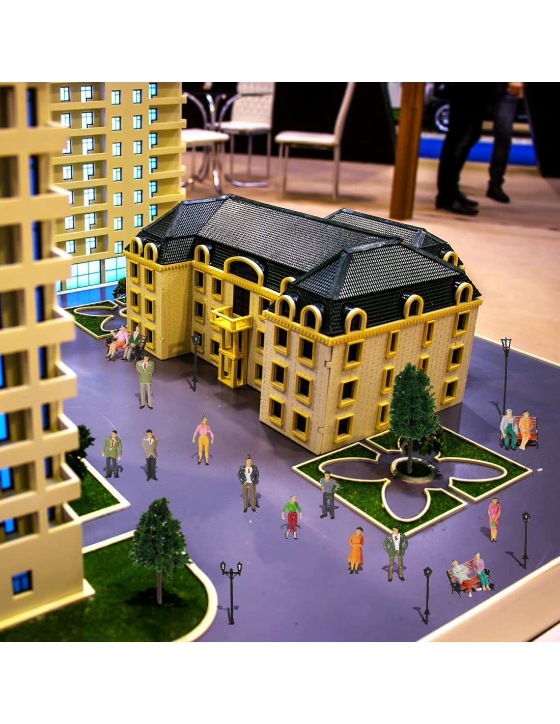 - Bonita combinación para ti: hay 30 piezas de personas en miniatura en diferentes posturas y géneros, 5 piezas de lámparas de luz, 11 piezas de árboles de modelo mezclado, 5 piezas de bancos marrones a escala 1: 75, 4 piezas de céspedes verdes, suficiente para que juegues con tu imaginación y expreses lo que deseas