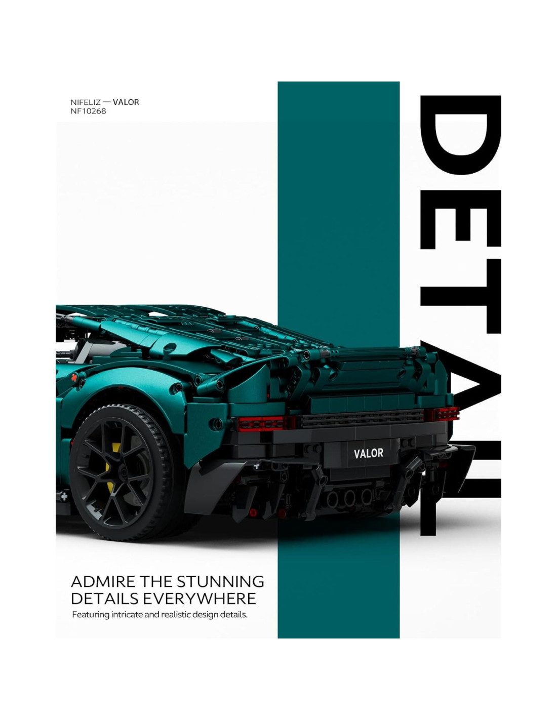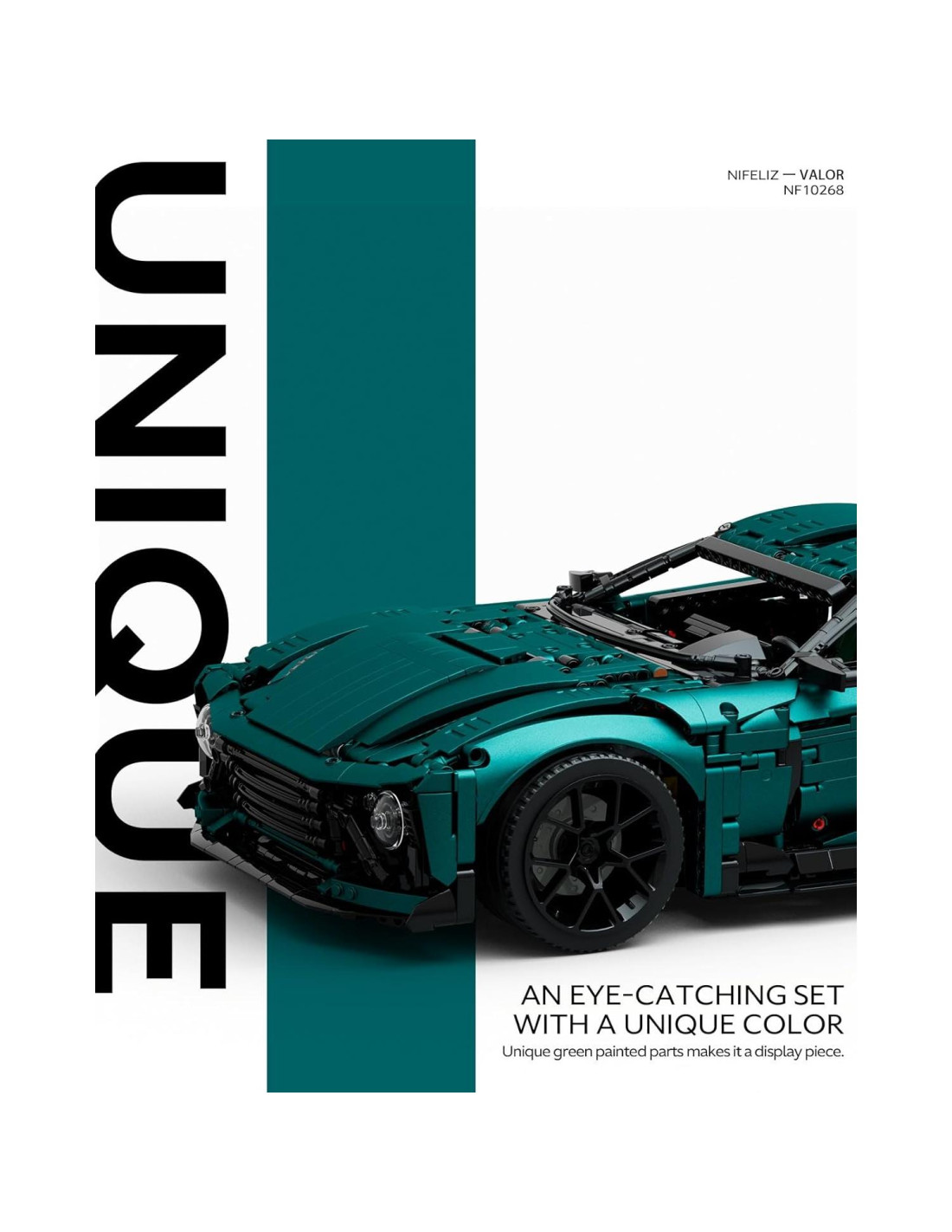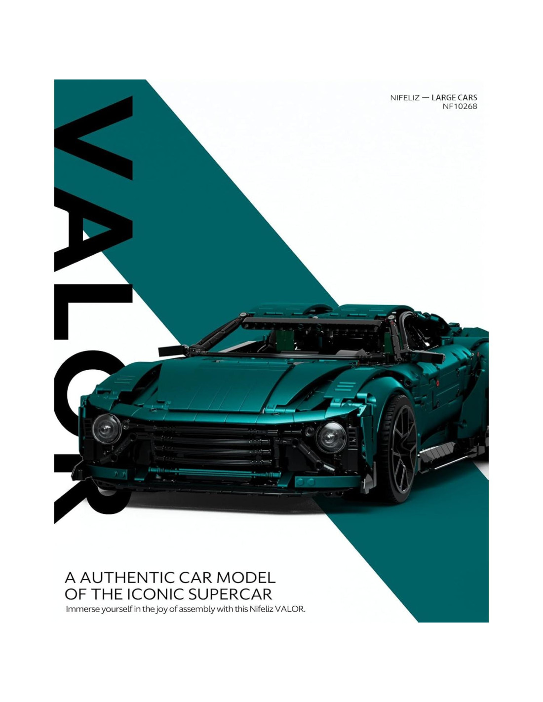 - Sumérgete en la alegría del ensamblaje con este modelo de coche deportivo Nifeliz VALOR, que presenta detalles de diseño intrincados y realistas que dan vida a la construcción.