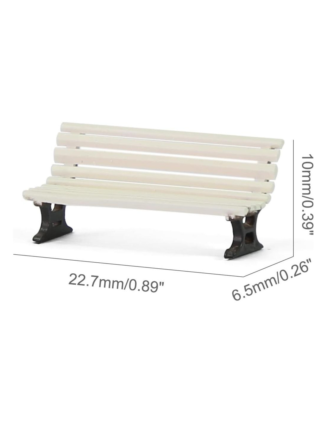 Características: 100% Nuevo y de alta calidad. ¡Perfecto para Diseño de Ferrocarriles y Edificios! Estos son de alta calidad, diseñados y elaborados para mejorar la apariencia de tu paisaje a escala. Perfecto para agregar a tu parque, plataforma de estación o calles y proyectos para un toque realista. Especificaciones: Marca: evemodel. Tamaño: como se muestra en la imagen, 2.27cm*0.65cm*1cm o 0.89" (2.26 cm)*0.26" (0.66 cm)*0.39" (0.99 cm). Color: Blanco con Marrón. Escala: 1:87, adecuado para escala HO TT. Material: Plástico. Paquete incluido: 12pcs Bancos de Plaza.