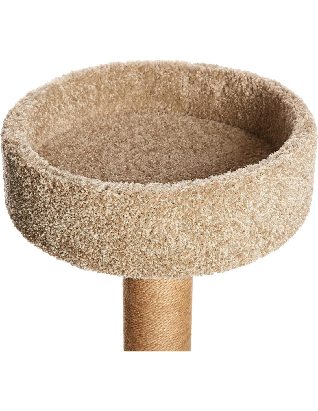 - Plataforma superior redonda con lados elevados y borde curvado que también sirve como cama para gatos