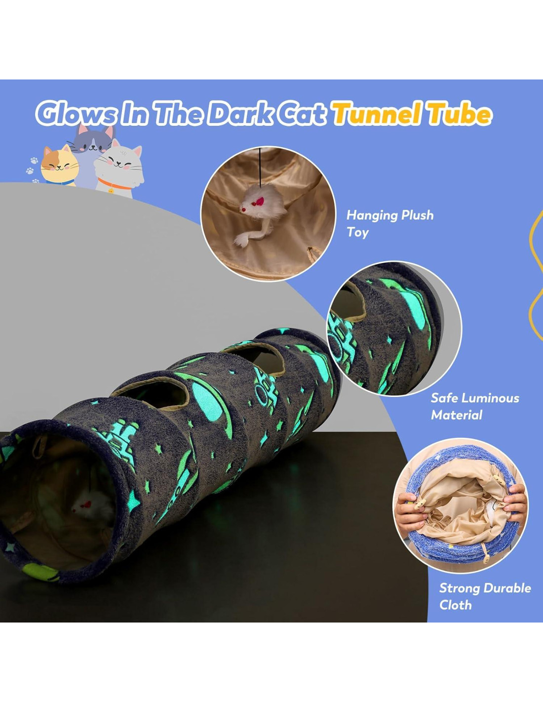 - [Esencial para el Entretenimiento Multifuncional de Mascotas] Con patrones únicos de cohetes y astronautas que brillan suavemente por la noche, este túnel para gatos crea un área de juego encantadora. Ofrece un espacio divertido para que los gatos, conejos y hurones jueguen, mientras que el brillo despierta su curiosidad. Adaptable para diferentes animales pequeños, satisface sus necesidades de juego, escondite y descanso. Es una opción preferida para los dueños de mascotas que buscan enriquecer la vida de sus mascotas y una gran adición a los juguetes para mascotas de interior.