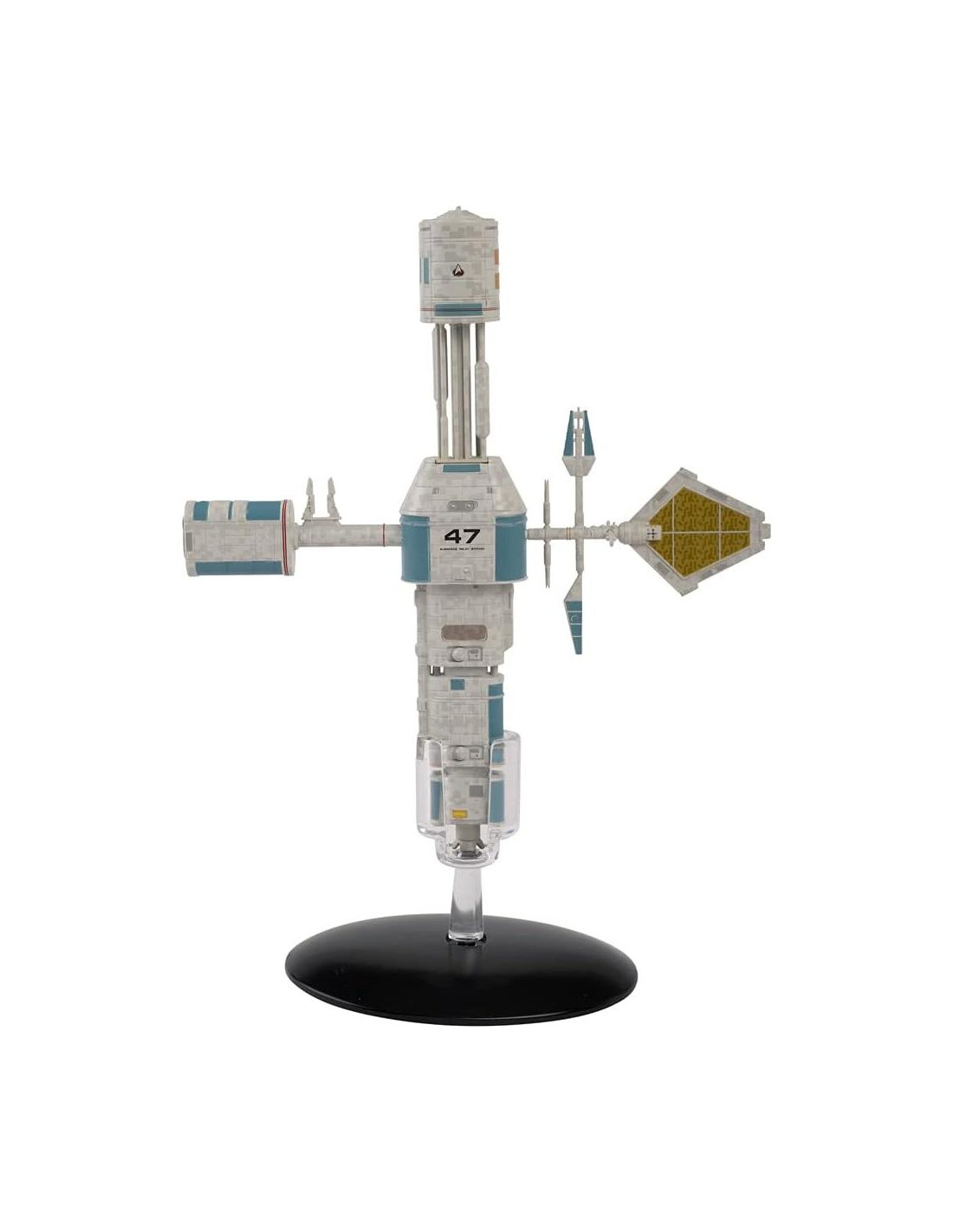 Presentamos el 26 Especial en nuestra Colección Oficial de Naves de Star Trek - ¡Estación de Relevo 47! Una estación de relevo de comunicación de Starfleet ubicada a lo largo de la frontera Federación-Klingon, la tripulación de la Estación de Relevo 47 enfrentó la presión de los agresivos Klingons, una larga aislamiento y conflictos internos. Tenía un complemento de solo dos oficiales de Starfleet y un solo transbordador, pero los tenientes Rocha y Uhnari chocaron temprano y a menudo, incluso mientras el comandante Klingon Morag hostigaba la estación con impunidad. En el episodio de La Nueva Generación 'Aquiel', el U.S.S. Enterprise-D llegó para entregar suministros, pero se vio envuelto en un misterio de asesinato. Geordi LaForge pronto se encontró enamorado de la teniente Uhnari, la principal sospechosa y única sobreviviente, pero la verdad del destino de la estación era más extraña de lo que había imaginado. Este fantástico modelo de la Estación de Relevo 47 de Star Trek en die-cast será una adición impresionante a tu Colección de Naves de Star Trek. Características del producto: Mercancía oficial de Star Trek Afiliación: Federación Longitud: aprox. 18 cm Viene con un soporte de exhibición para mostrar en casa u oficina. La Estación de Relevo 47 viene con una revista a todo color, que incluye un perfil detallado, arte de producción original y detalles de su evolución de diseño.