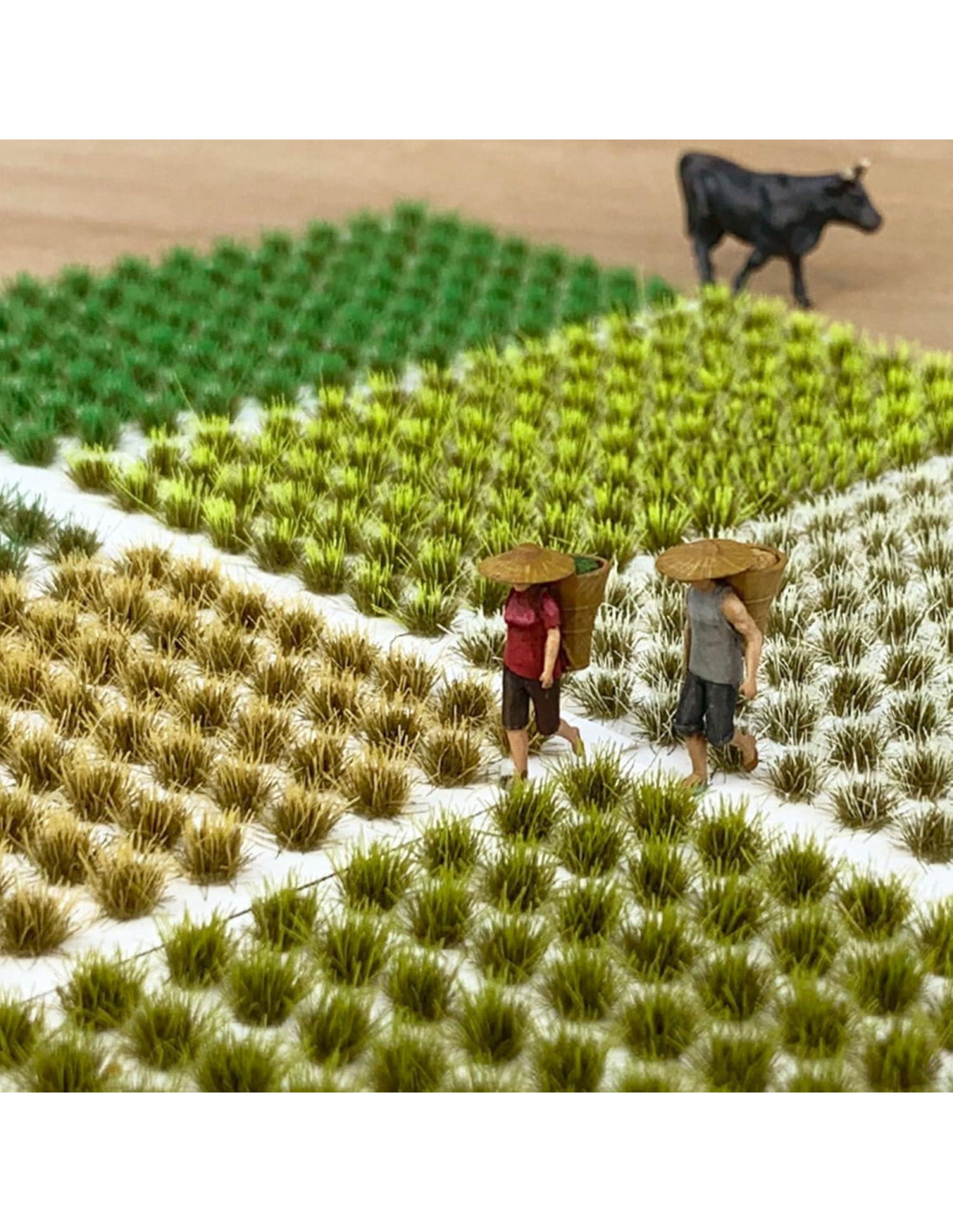 - Ampliamente utilizado: Este modelo de tuft de hierba estático podría aplicarse ampliamente como modelo de ferrocarril, diorama, modelo de edificio, diseño de escena o decoraciones de paisaje, etc.