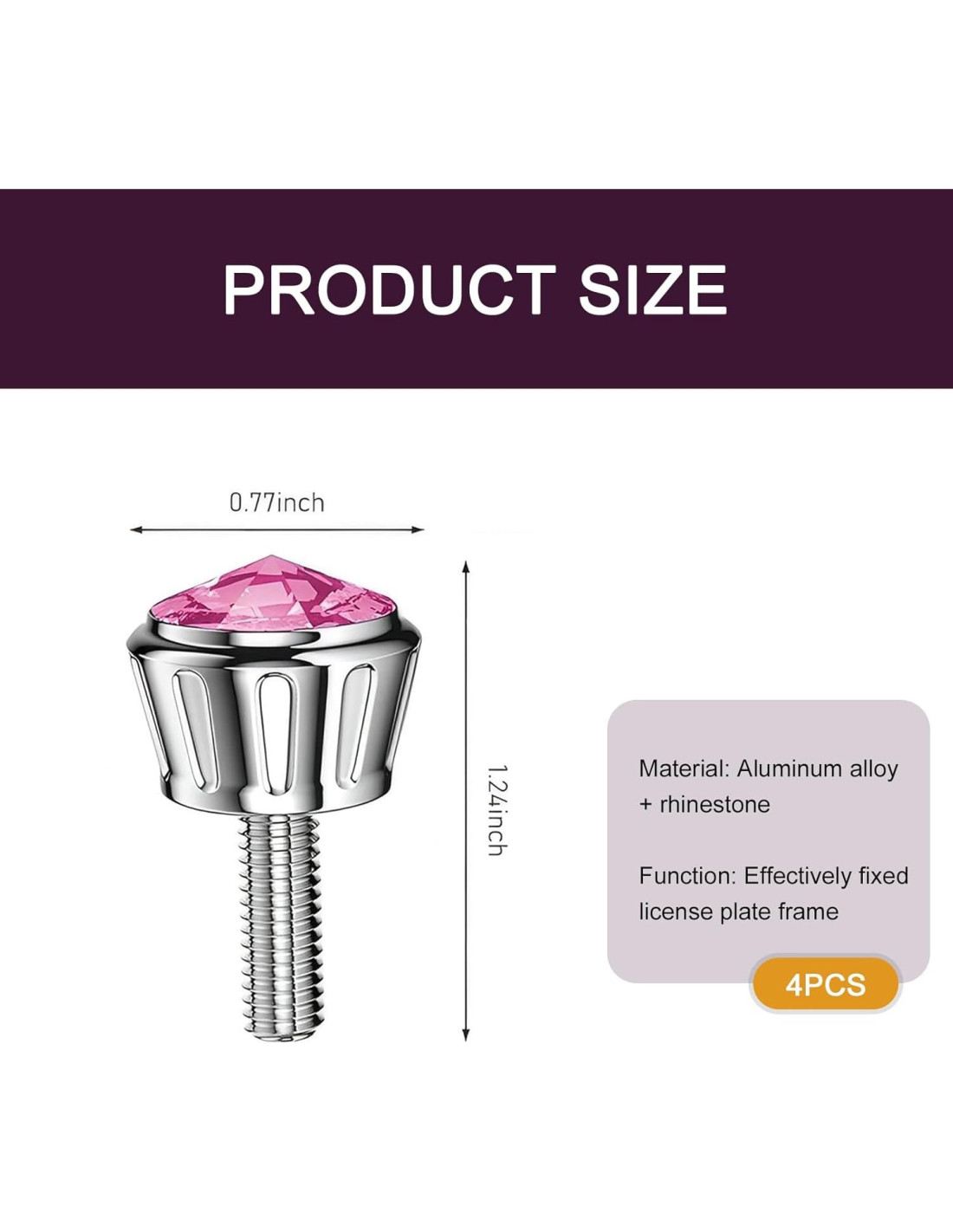 kit de fijación de placas de matrícula de automóvil de 4 PCS, tapas de tornillo antirrobo de cristales de rhinestone, accesorios de sujetadores a prueba de óxido para automóviles, universal para la mayoría de los coches (rosa)
