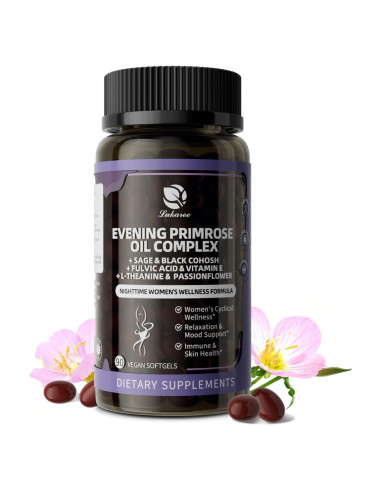 - Complejo de Aceite de Onagra Multi-Hierbas para Mujeres: Más que solo cápsulas de aceite de onagra - esta fórmula inspirada en lo orgánico combina 1000mg de aceite de onagra con 10% GLA, Cohosh Negro, Salvia y Flor de Pasión para apoyar el bienestar cíclico de las mujeres, el equilibrio hormonal y la relajación nocturna.
