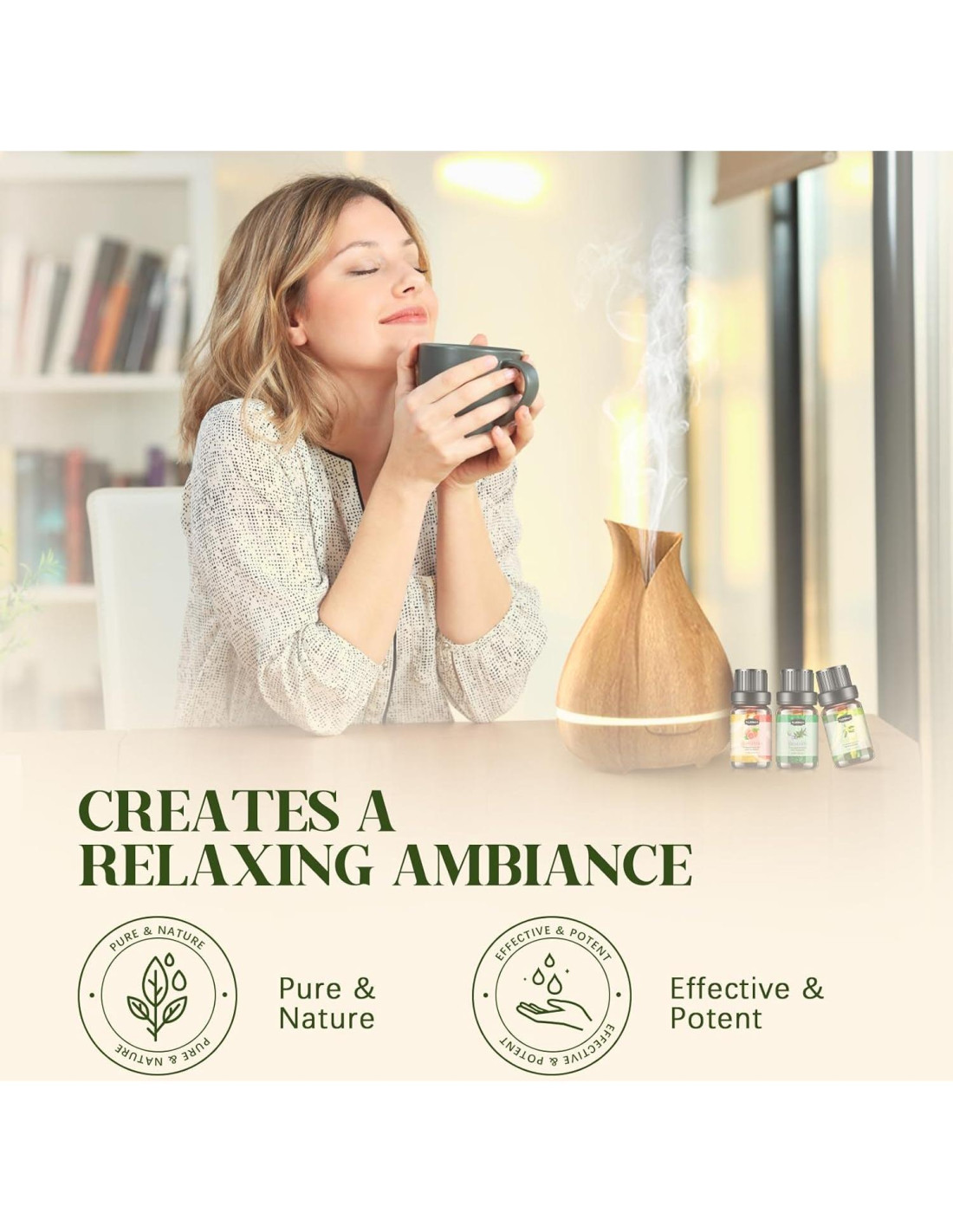 - Usos Infinito: Los aceites esenciales son ideales para usar en difusor o humidificador. Usados para aromaterapia, masaje, cuidado de la piel y el cabello, perfumería natural, baño, saunas, ambientadores, artículos del hogar, oficina, campamento, sala de yoga, automóvil y spa.
