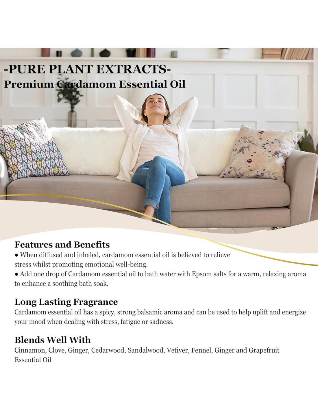 - Característica del Aroma: El aroma del aceite esencial de cardamomo es cálido-especiado, dulce, algo floral y alcanforado. El aroma del cardamomo puede ser embriagador.