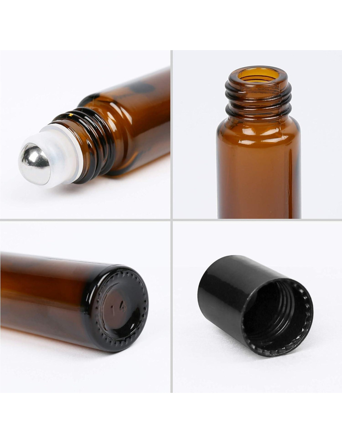 Las botellas de roll-on LotFancy son perfectas para empaquetar y compartir tus propios aceites esenciales o perfumes. Las botellas de vidrio ámbar son la herramienta adecuada para aplicar aceites esenciales, mezclas y aceites de masaje en tu piel. El rodillo dispensa una cantidad controlada y uniforme en el lugar deseado. El tamaño de 10ml es perfecto para viajar, el coche, carteras y bolsos.