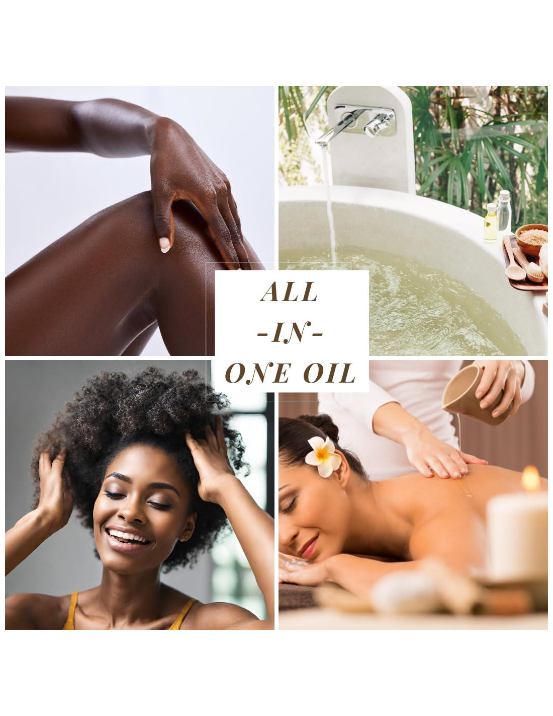 - - Usado como un aceite de masaje terapéutico, aceite anti-envejecimiento para la piel y el baño y restaurador del cabello, sus potentes ingredientes son conocidos por sus habilidades para mejorar y sanar tanto el cuerpo físico como el corazón. Contrarrestan el envejecimiento e inspiran sentimientos de amor, auto-aprecio y conexión espiritual.