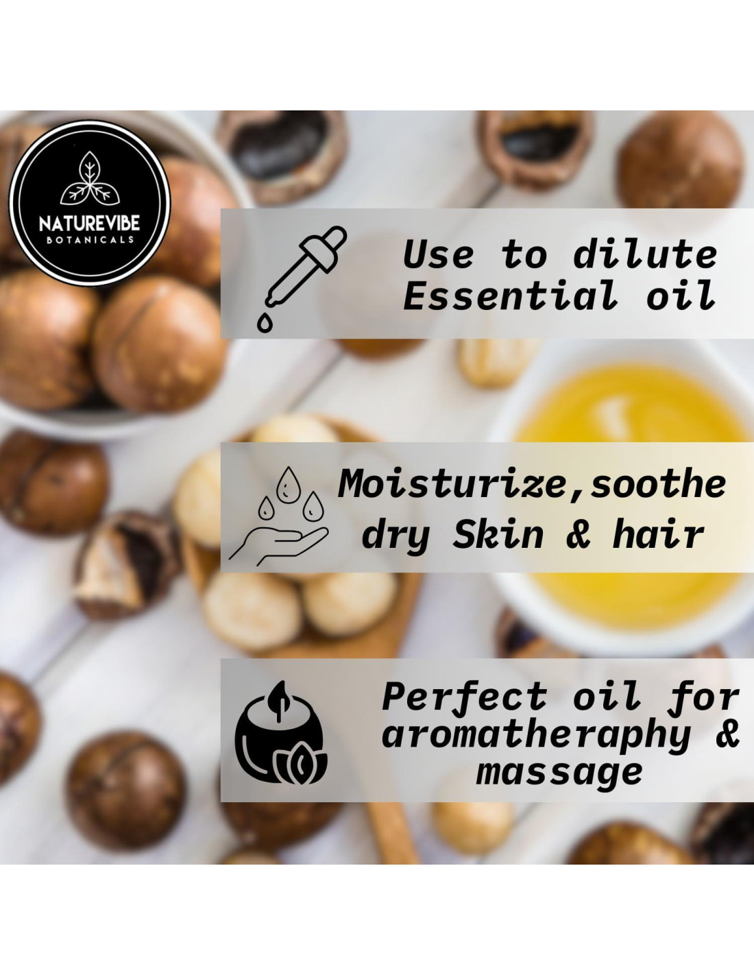 - Nuestro aceite de nuez de kukui es prensado en frío y libre de cualquier relleno artificial.