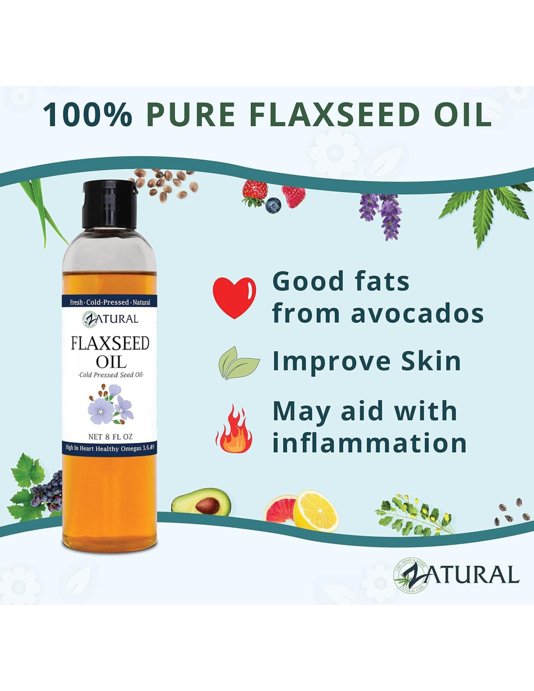 - ACEITE DE SEMILLA DE LINO PRENSADO EN FRÍO: El aceite de semilla de lino es una gran fuente de ácidos grasos Omega-3. Los Omega-3 son esenciales para la salud humana.