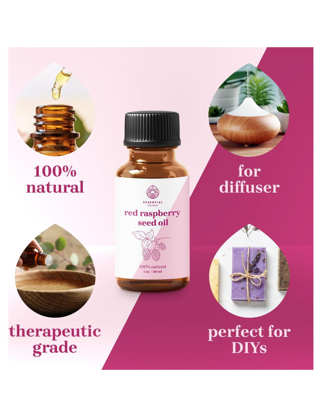 Reconocido por su aroma fresco, dulce y afrutado, el Aceite de Semilla de Frambuesa Roja es un toque rejuvenecedor para tu régimen de belleza. Extraído en frío de semillas de frambuesa, produce un líquido potente, rico en ácido alfa-linolénico, ácido linoleico y vitamina E, asegurando una profunda nutrición e hidratación para tu piel. Agrega unas gotas a tu loción favorita cada día y disfruta de su efecto transformador en tu piel. Con su aroma cautivador y poderosos lípidos hidratantes, el Aceite de Frambuesa es el elixir por excelencia para el bienestar y el brillo natural de la piel.