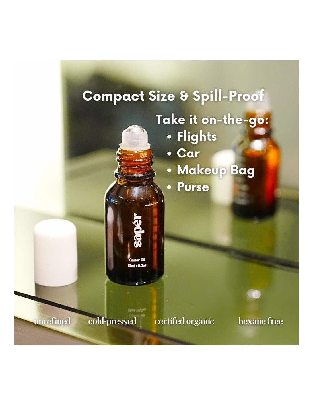 No se trata de reinventar, sino de perfeccionar. Bienvenido a sapér, un guiño al italiano "saper vedere" (saber ver). Mientras todos persiguen la última tendencia, nosotros somos un poco a la antigua. Profundizamos para encontrar esas joyas de belleza atemporales y darles un toque moderno. Piénsalo como tomar los clásicos secretos de belleza de la abuela y darles un nuevo y brillante cambio de imagen. Sumérgete en el viaje de sapér y celebremos la belleza que nunca pasa de moda. Rico en antioxidantes y ácidos grasos, el aceite de ricino combate los radicales libres, calma el acné y hidrata de manera efectiva. Úsalo para piel seca, arrugas, crecimiento del cabello y más, convirtiéndolo en un elemento versátil en tu colección de cuidado personal. Nuestro aceite se obtiene de manera responsable de Rajasthan, India, conocido por su suelo rico en nutrientes que produce las plantas de ricino más puras y de la más alta calidad. Este enfoque de origen único garantiza una pureza y potencia inigualables en cada gota. El proceso de prensado en frío asegura que nuestro aceite de ricino retenga sus nutrientes vitales y propiedades curativas naturales, brindando la máxima efectividad para tu cuerpo. Rueda suavemente el aceite de ricino sobre las cejas, pestañas, línea del cabello o cualquier área de la piel.