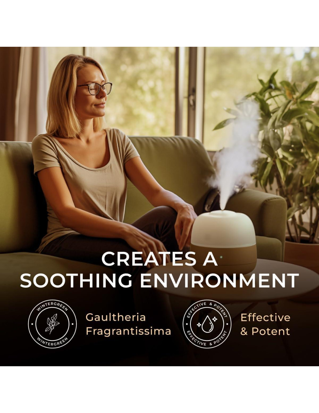 - A algunos les puede gustar la naturaleza refrescante del Aceite Esencial de Gaulteria para aliviar dolores de cabeza por tensión y calmar espacios mentales ocupados.