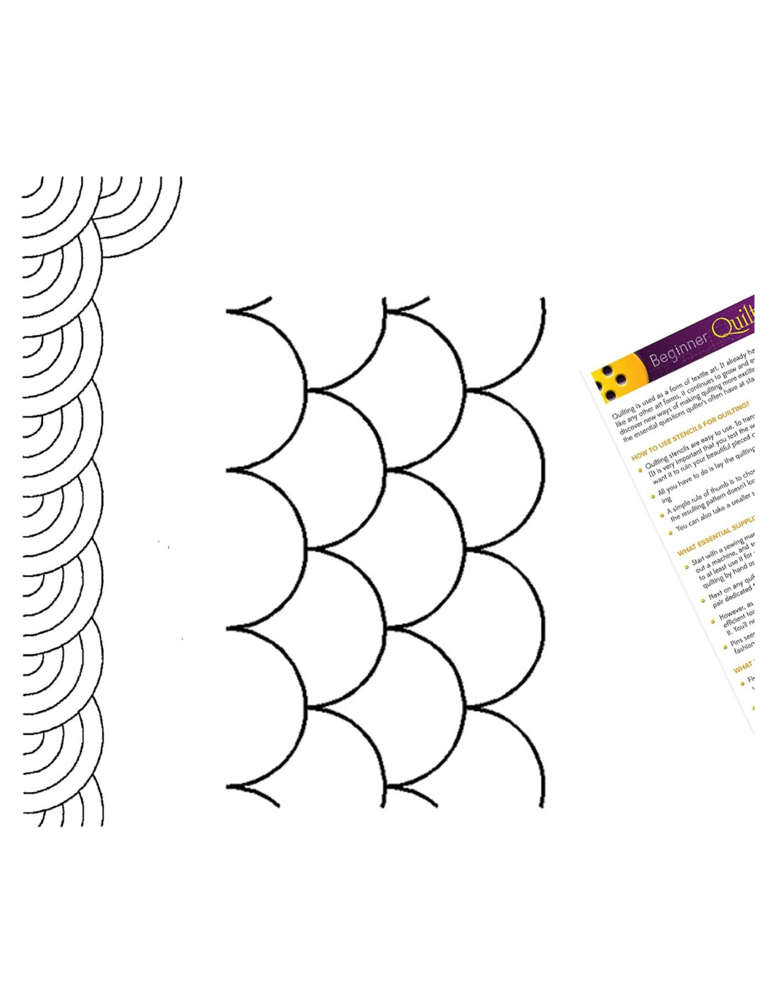 ¡Agrega un toque de elegancia a tus proyectos de acolchado con este conjunto de plantillas de acolchado! Diseñadas para acolchado a máquina y a mano, estas plantillas son una herramienta imprescindible para acolchadores de todas las edades y niveles de habilidad. Ya seas un principiante o un usuario avanzado de máquinas de acolchado para uso doméstico, o simplemente un entusiasta general de las plantillas de acolchado y las plantillas de acolchado para acolchado a mano o a máquina, estas herramientas versátiles son una fantástica adición a cualquier proyecto de acolchado. Las ranuras bien definidas de estas plantillas de acolchado de plástico facilitan el trazado de diseños y patrones particulares. No limites tu creatividad solo al acolchado, porque también son excelentes para trazar diseños en una pared para pintar, cortinas, muebles (con superficies lisas), trazar en cuero, hacer álbumes de recortes (o journaling), manualidades y ropa (para bordado). Son una gran manera de agregar textura y profundidad a los acolchados, especialmente si se combinan con diferentes técnicas de acolchado y telas. El diseño de la plantilla representado en la imagen es una plantilla hecha de hojas de plástico flexible semitransparentes para acolchado. Para acolchadores principiantes, este conjunto de plantillas de acolchado cuenta con una útil guía de acolchado laminada. Entonces, ¿por qué esperar? Ya seas un acolchador experimentado o estés comenzando, este conjunto de plantillas de plástico para acolchado es una adición imprescindible a tu kit de herramientas de acolchado. ¡Experimenta la alegría y satisfacción de acolchar como un profesional! Dimensiones: 1.5 pulgadas (3.81 cm) Borde de pequeño ventilador bautista: 15 x 4 x 0.012 pulgadas (38.1 x 10.16 x 0.0305 cm), 3.5 pulgadas (8.89 cm) Concha: 13 x 8 x 0.012 pulgadas (33.02 x 20.32 x 0.0305 cm)