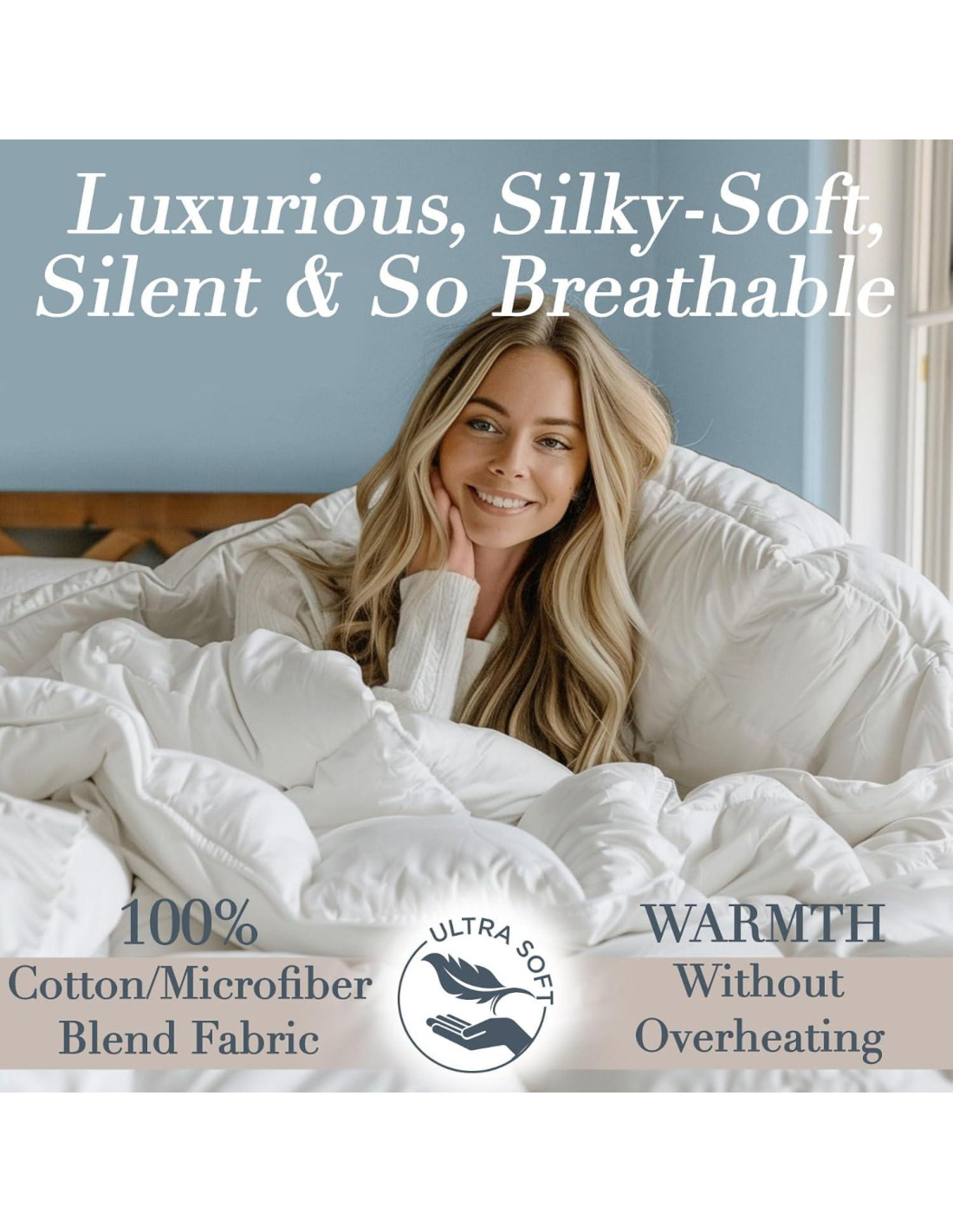 - RECUPERA TU SANTUARIO - Duerme envuelto en un lujoso edredón de plumas esponjoso con tejido de mezcla de algodón/microfibra de alta cuenta de hilos, que es suave como la seda, silencioso y extremadamente transpirable.