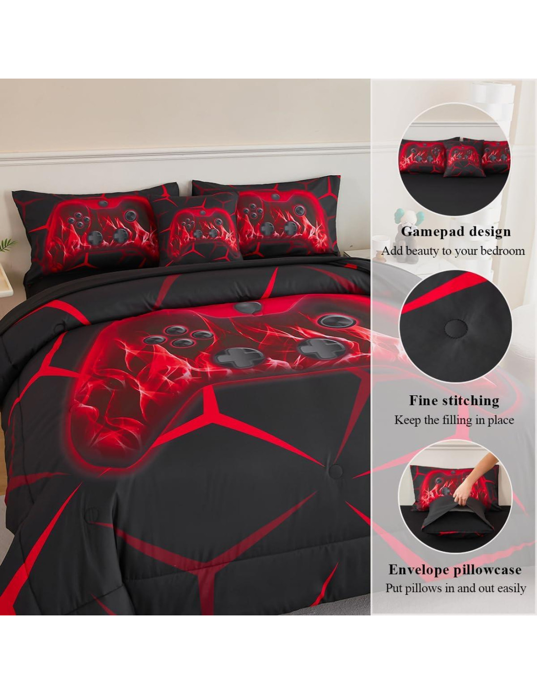 - Diseño de Impresión Estereoscópica: Nuestra ropa de cama con gamepad está hecha con tecnología de impresión digital 3D, presentando un fondo negro con combinaciones de colores vibrantes. Los patrones son vívidos y claros, con formas geométricas que crean un diseño hermoso y elegante para nuestro edredón. El relleno está firmemente fijado en su lugar, evitando que se desplace o se amontone, y las costuras son ajustadas, brindándote una sensación de relajación y comodidad.