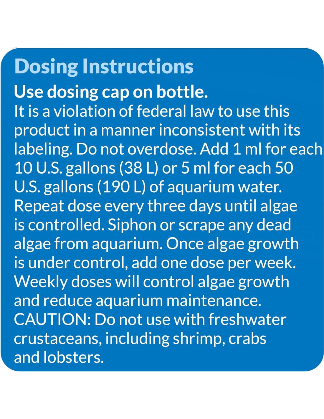 Trata y controla el crecimiento de algas y reduce el mantenimiento de tu acuario de agua dulce con la Solución de Control de Algas API ALGAEFIX. Este producto revolucionario está especialmente desarrollado para controlar muchos tipos de algas, incluyendo brotes de algas de "agua verde" y algas en forma de hilo o cabello, y no dañará a los peces ni a las plantas cuando se use según las indicaciones. Dosis semanales de la Solución de Control de Algas API ALGAEFIX controlarán el crecimiento de algas y reducirán el mantenimiento del acuario. Para tratar las algas, agrega 1 ml por cada 10 galones (37.85 litros) de agua y repite cada tres días hasta que las algas estén controladas. Usa este tratamiento para acuarios semanalmente para mantener los acuarios de agua dulce limpios y claros. La Solución de Control de Algas API ALGAEFIX no es para usar con crustáceos de agua dulce, incluyendo camarones, cangrejos y langostas. Con los productos de API Aquarium, es fácil mantener un hermoso acuario de agua salada, agua dulce o de arrecife. Durante más de 50 años, API ha estado creando soluciones innovadoras impulsadas por la investigación que facilitan el cuidado de tus peces y acuario. Los Suministros de Tratamiento de Acuarios API están diseñados para trabajar en conjunto para proporcionar los mejores resultados en el control de algas, promover el crecimiento bacteriano saludable y ayudar a controlar y curar enfermedades y condiciones de los peces como el ich y la descomposición de aletas. Trabajan para proporcionar un ambiente seguro y hospitalario para peces como los peces de comunidad tropical, cíclidos, goldfish y más. Con API, puedes pasar más tiempo admirando tus peces y menos tiempo fregando tu tanque. Asegúrate de usar todos los productos según las indicaciones para garantizar los mejores resultados.