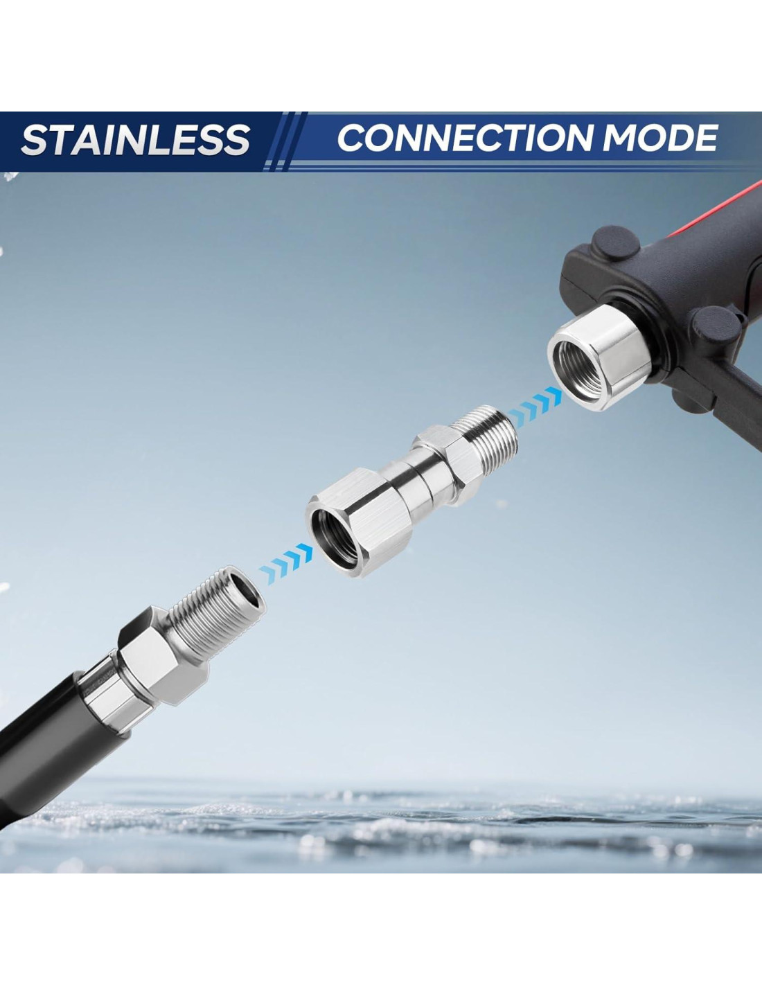 - Duradero: El conector giratorio para pistola de lavadora a presión está hecho de acero inoxidable de alta calidad para soportar un uso frecuente, asegurando durabilidad y fiabilidad a largo plazo.